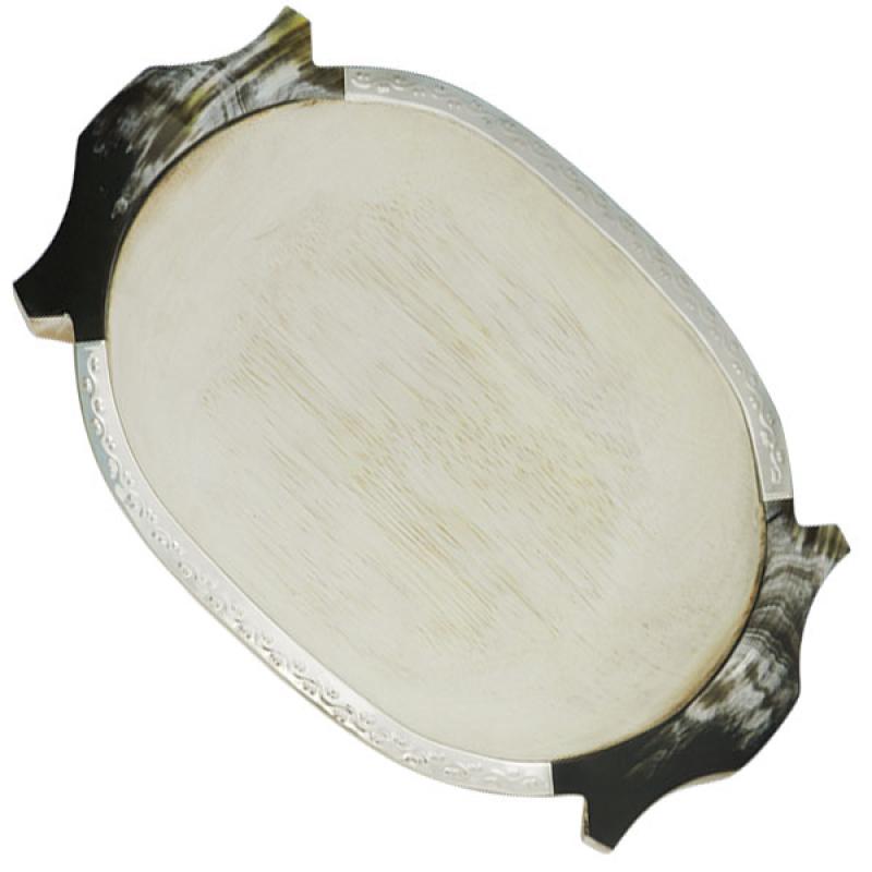 Bandeja De Madera Pacará Con Finas Terminaciones En Alpaca Labrada y Asta
