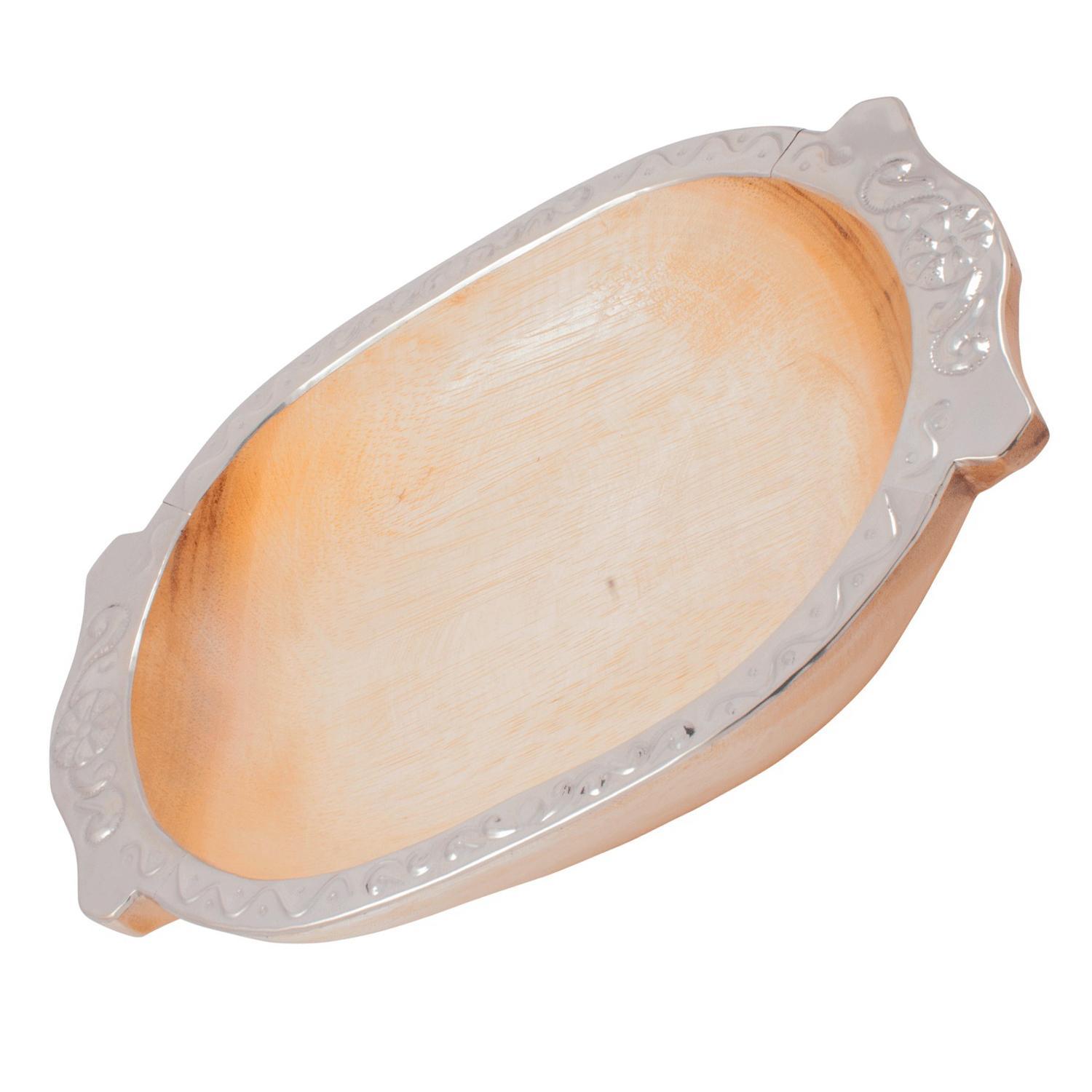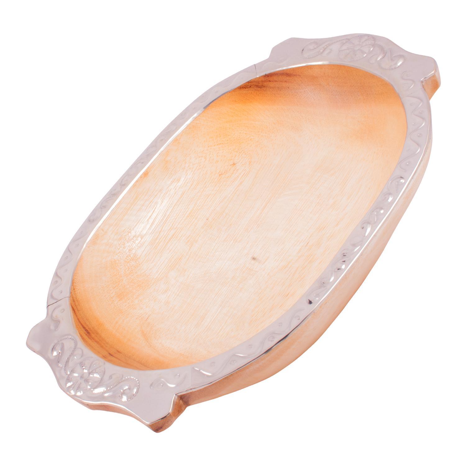 Bandeja De Madera Pacará Con Finas Terminaciones En Alpaca Labrada