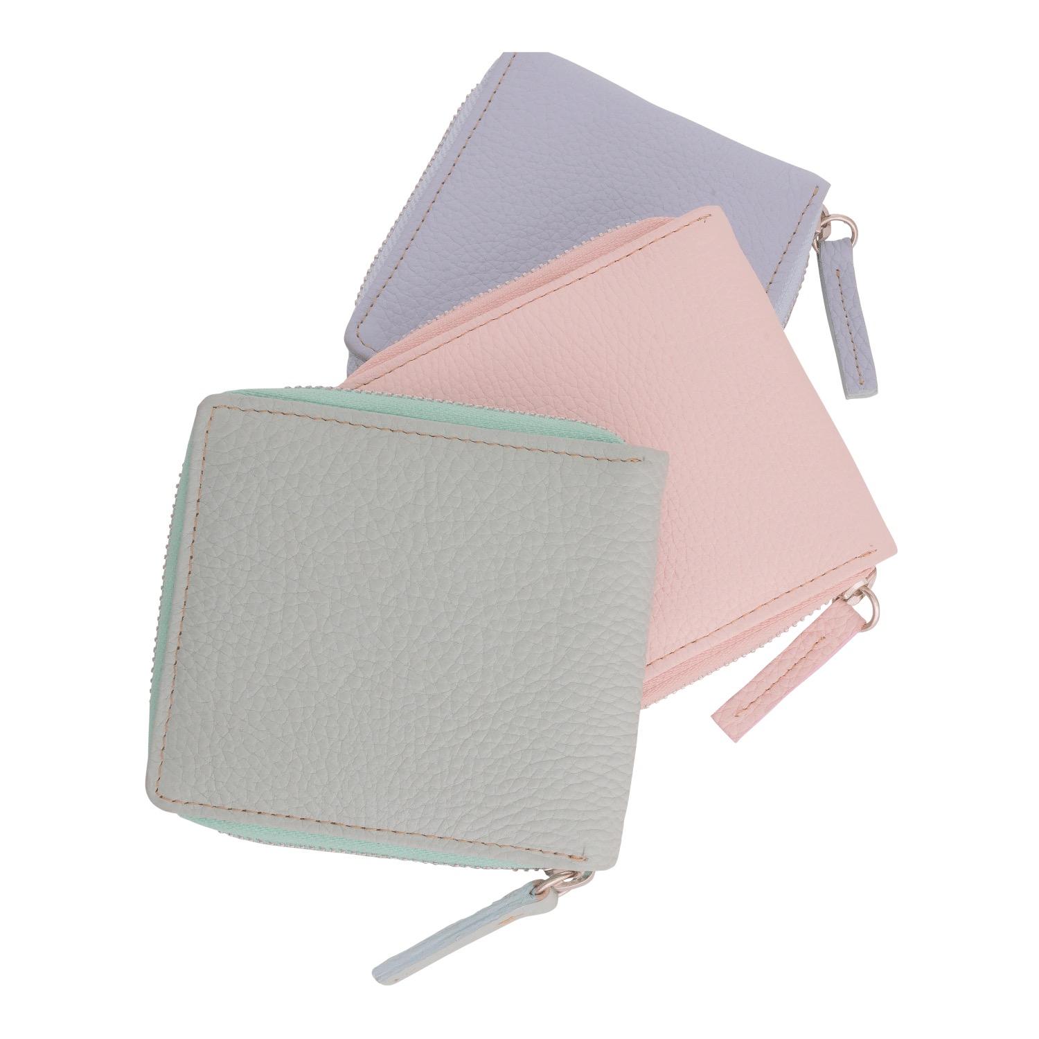 Billetera De Dama En Cuero Con Cierre Tonos Pasteles