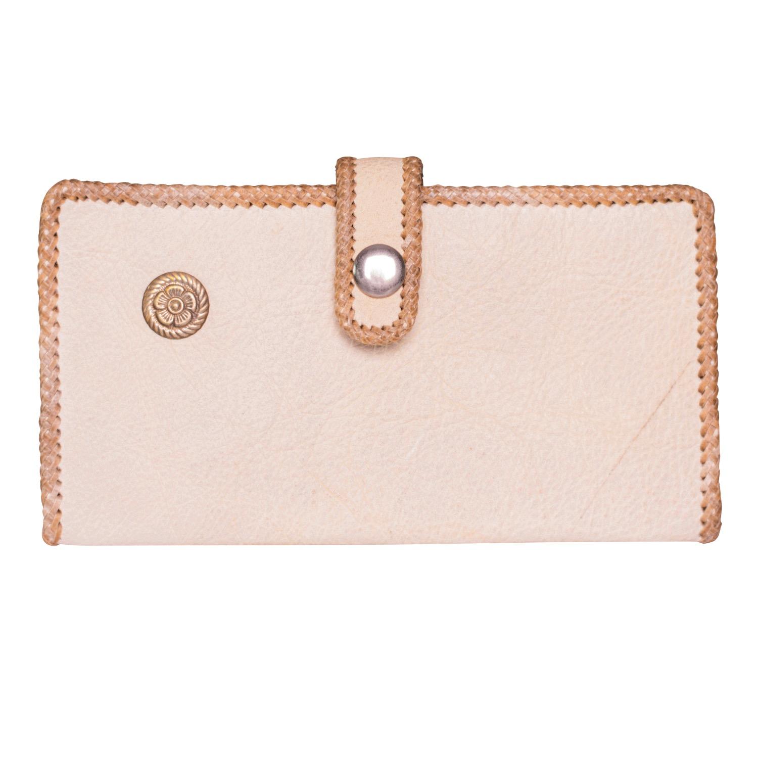 Billetera De Dama En Cuero Crudo Costura De Borde Con Dije