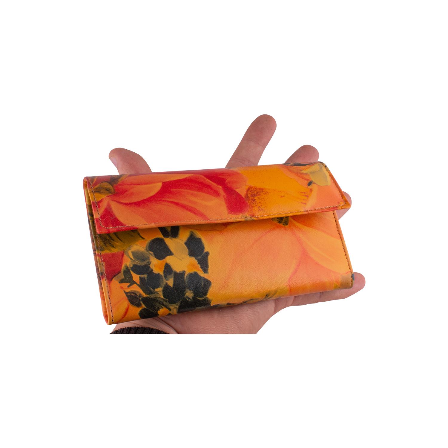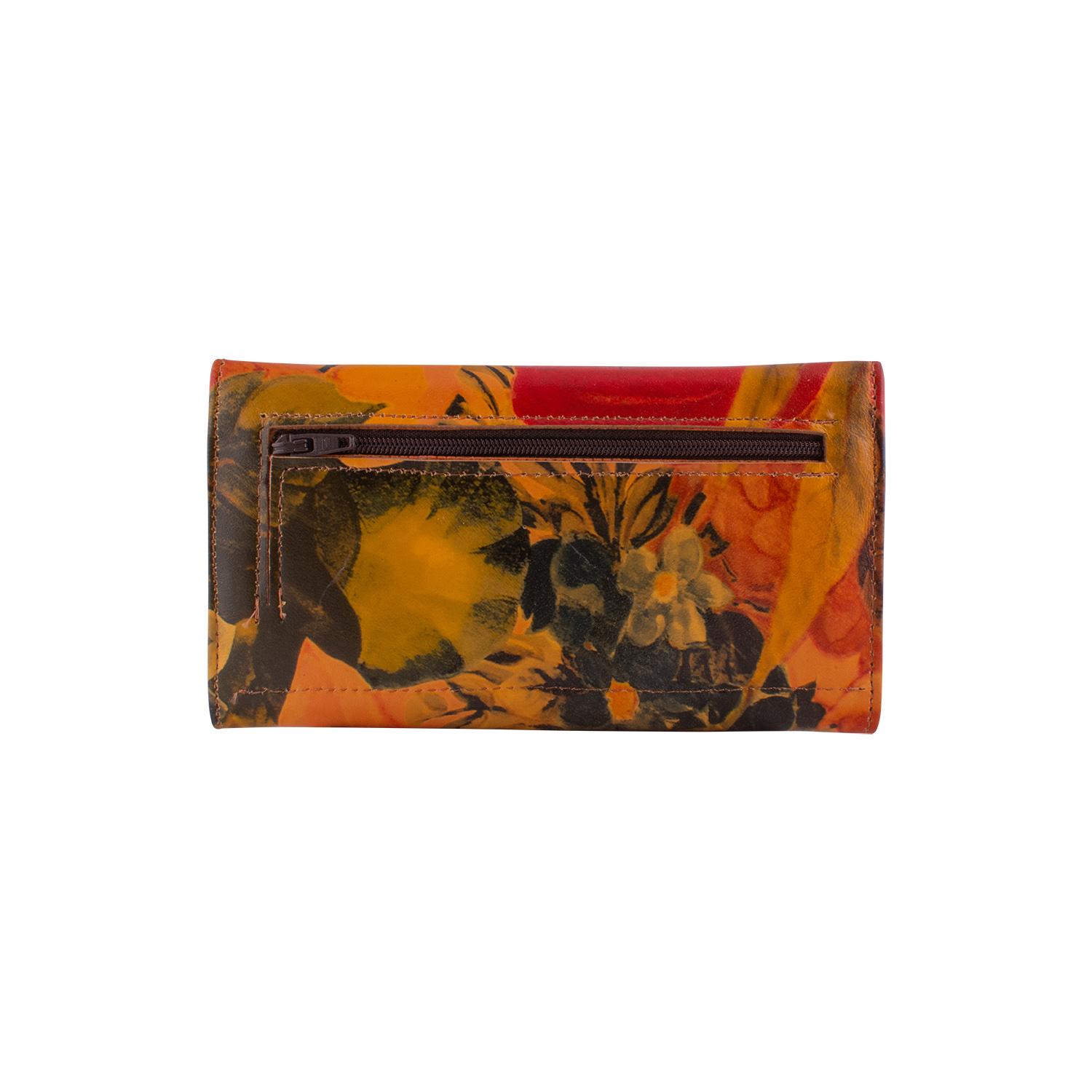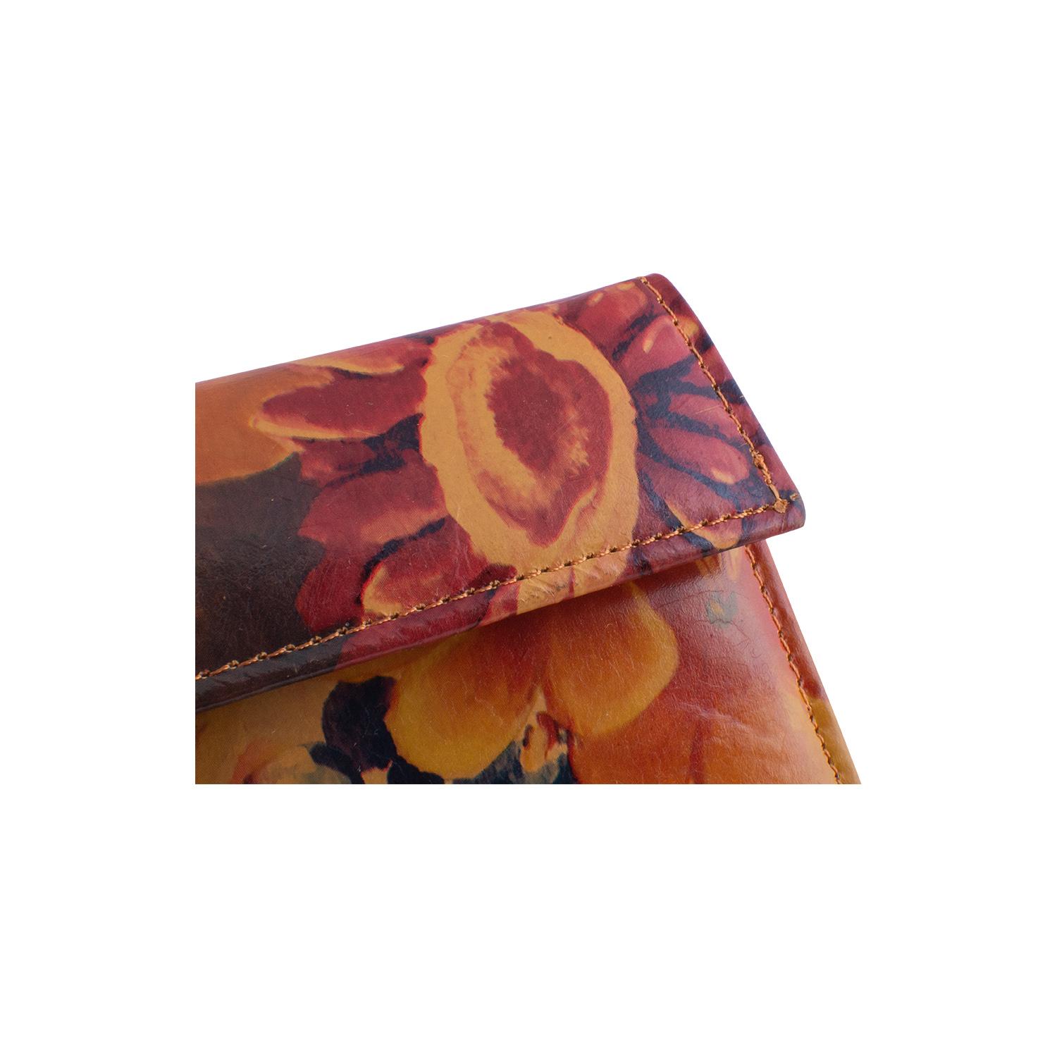 Billetera Tipo Fichero De Cuero Anilina Floreada Con Solapa