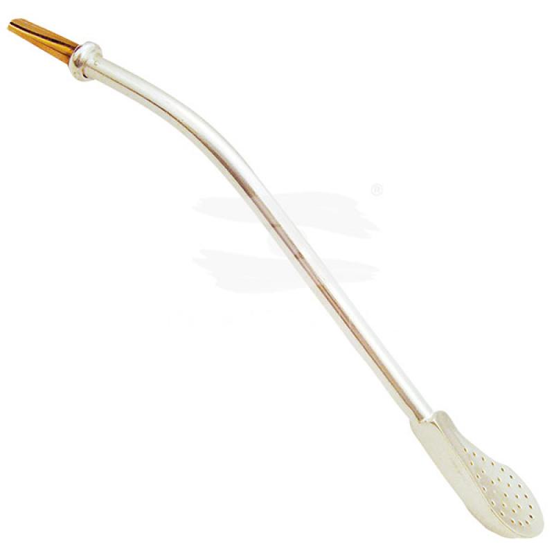 Bombilla De Alpaca Corta Con Pico Bañado En Oro 18K