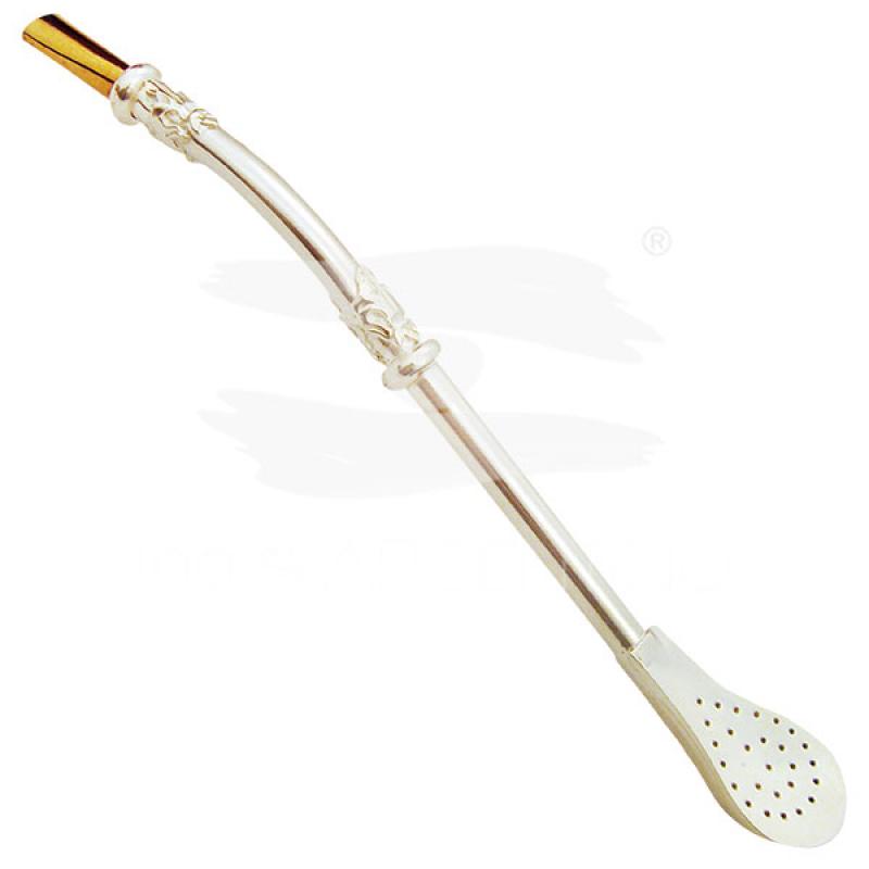 Bombilla de Alpaca Doble Labrado Con Pico Bañado En Oro 18K