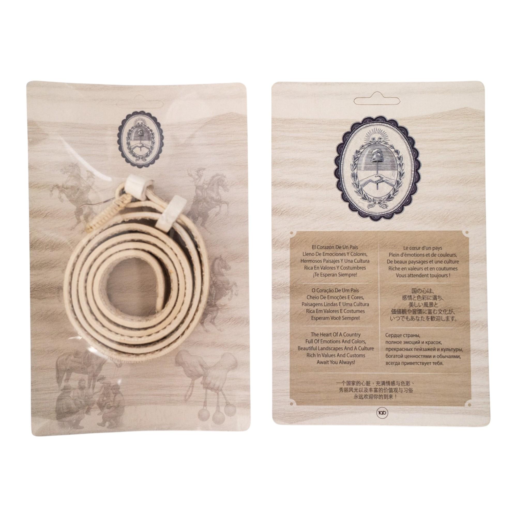 Cinto blanco de cuero crudo tejido en tiendo en blister
