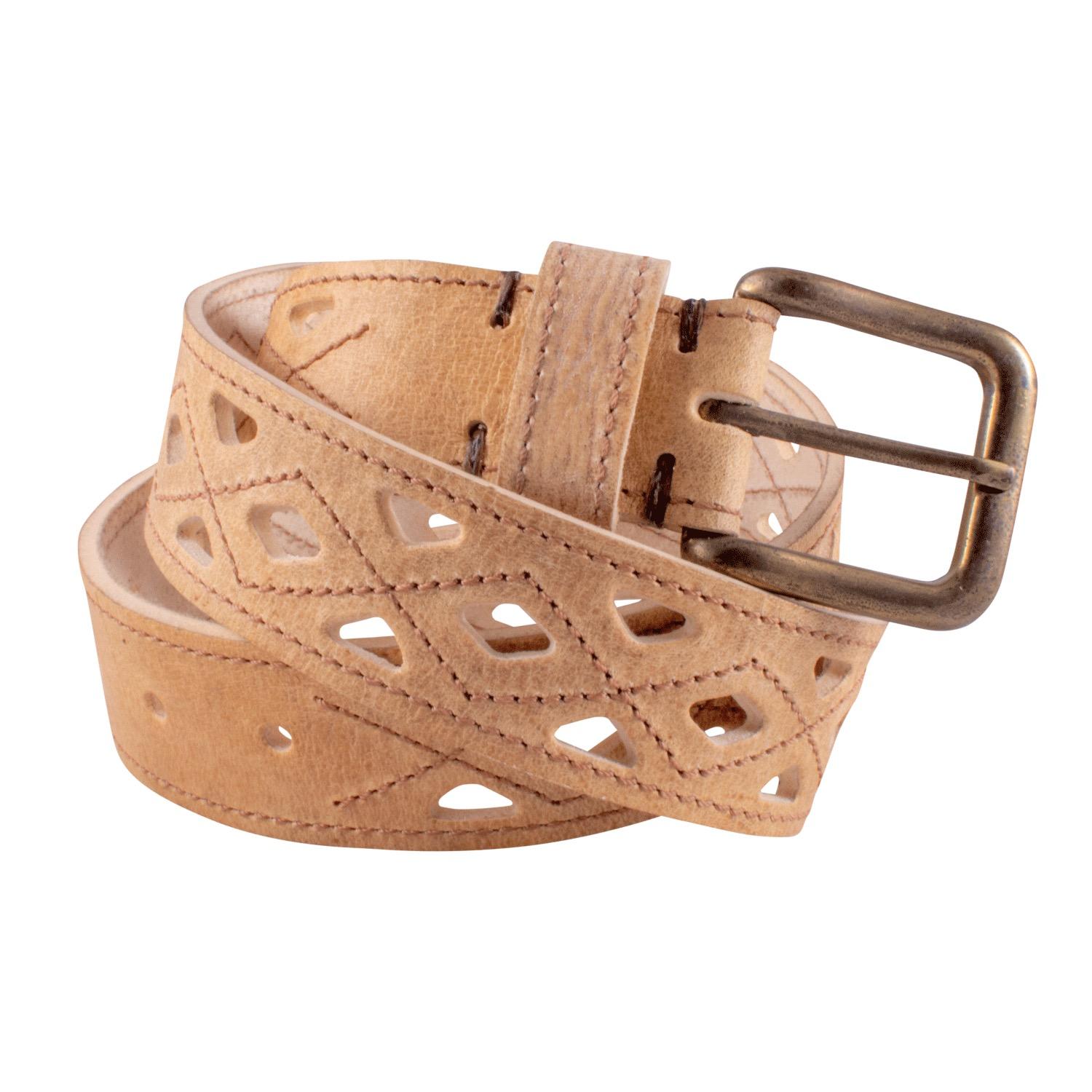 Cinto De Cuero Crudo Tejido En Borde Con Rombos