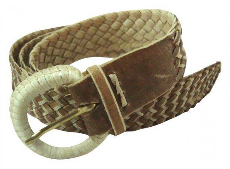 Cinto De Cuero Crudo Tramado Para Dama Con Hebilla Forrada En Tiento