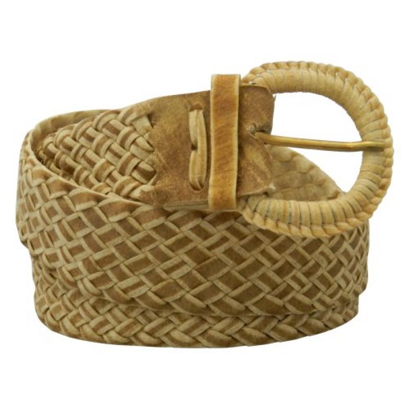 Cinto De Cuero Crudo Tramado Para Hombre Con Hebilla Forrada En Tiento
