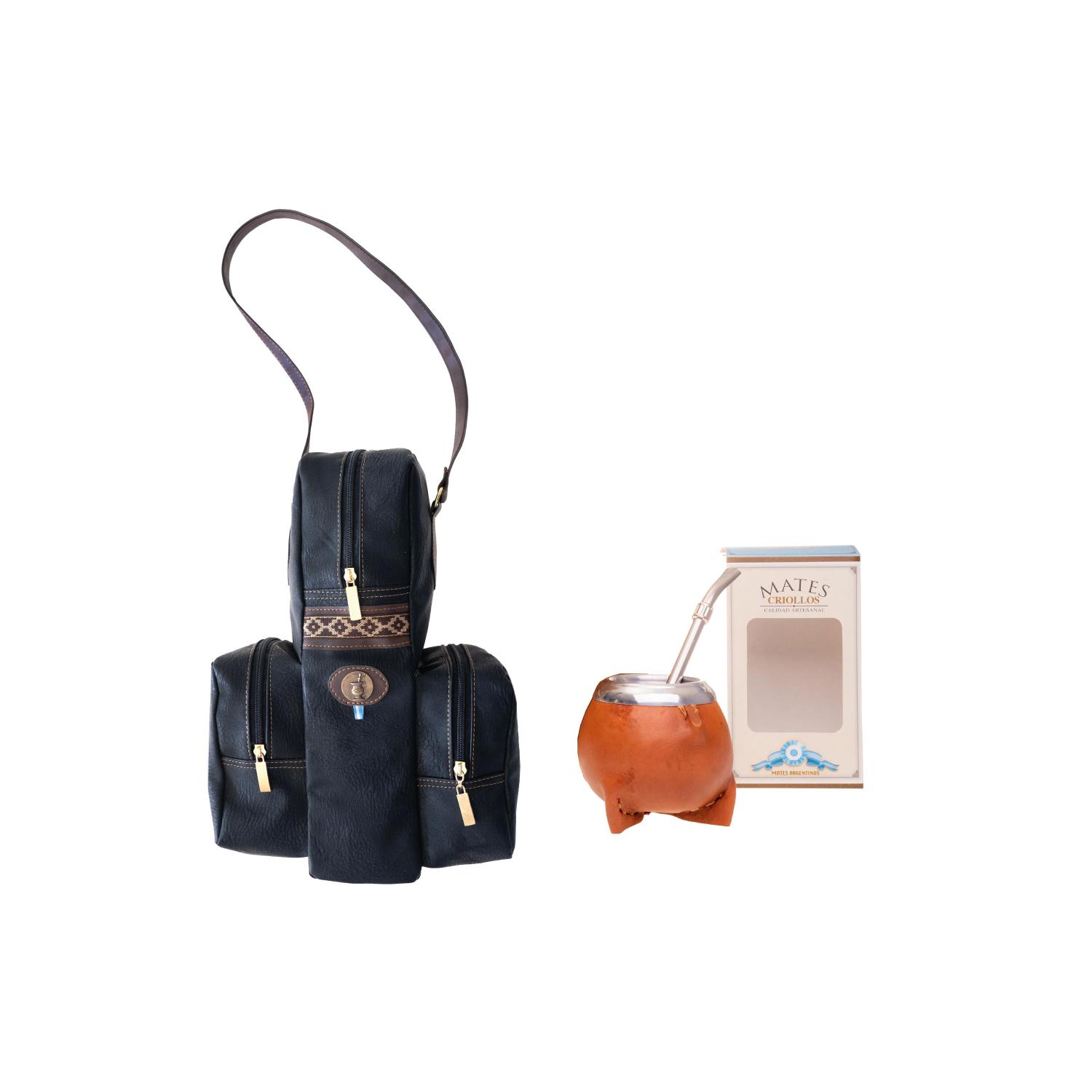 Combo Set Materos (1 Porta Termo En Eco Cuero Con Guarda Pampa y Dije , 1Mate Porito Vaqueta Claro Con Bombilla Inox Grabado C/Caja )