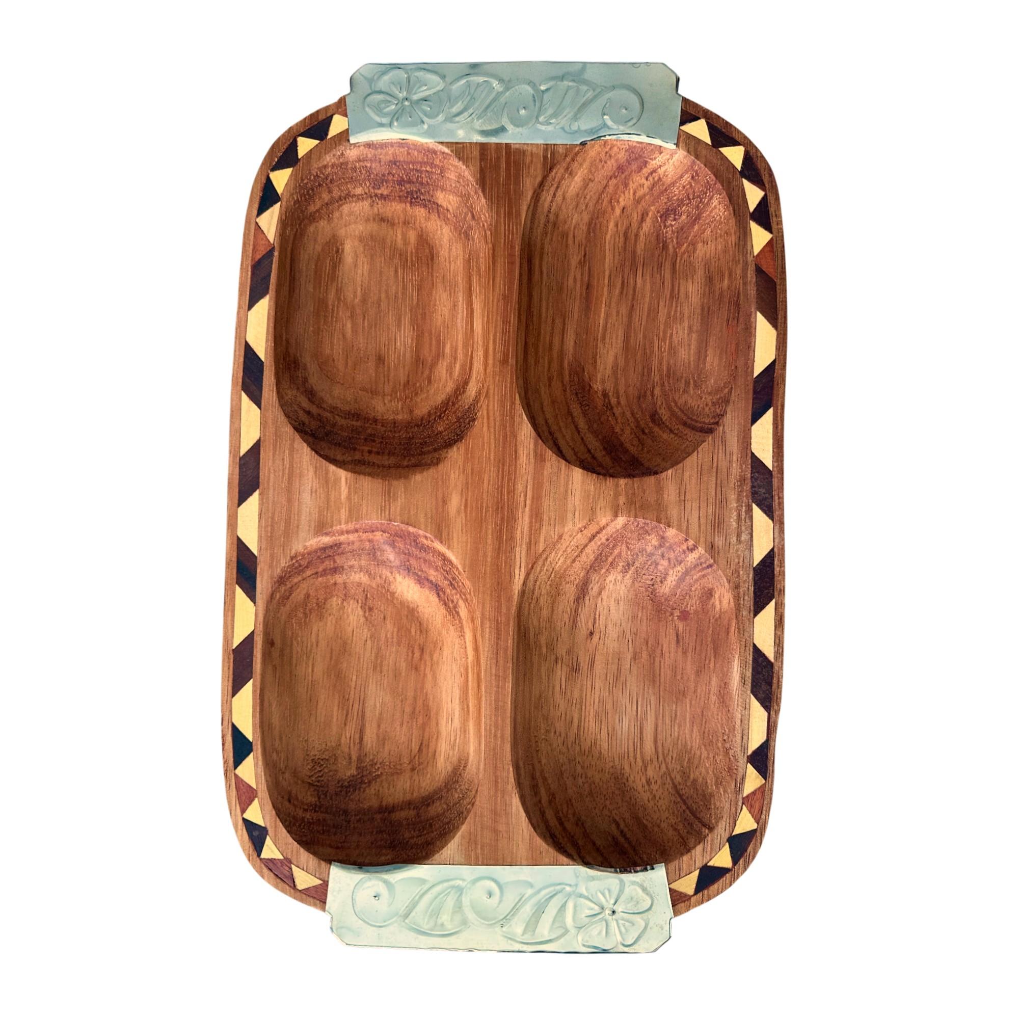 Copetinero De Madera Pacara con Taraceado y Alpaca Labrada x 4 Divisiones
