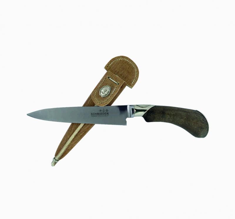 Cuchillo Madera Alpaca Tipo Pistola Con dije en 14 Cm Vaina de Cuero Crudo
