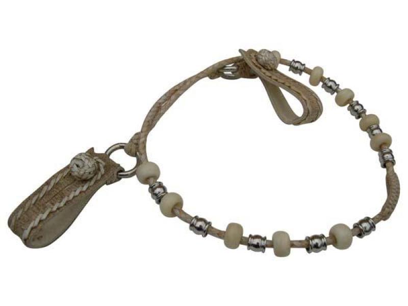 Cuenta Ganado Trenzado Fino Con 10 Argollas De Alpaca y 10 Bombas De Soga O Hueso Torneado Con Separador y Presillas Bordadas En Centro. Largo 55cm.