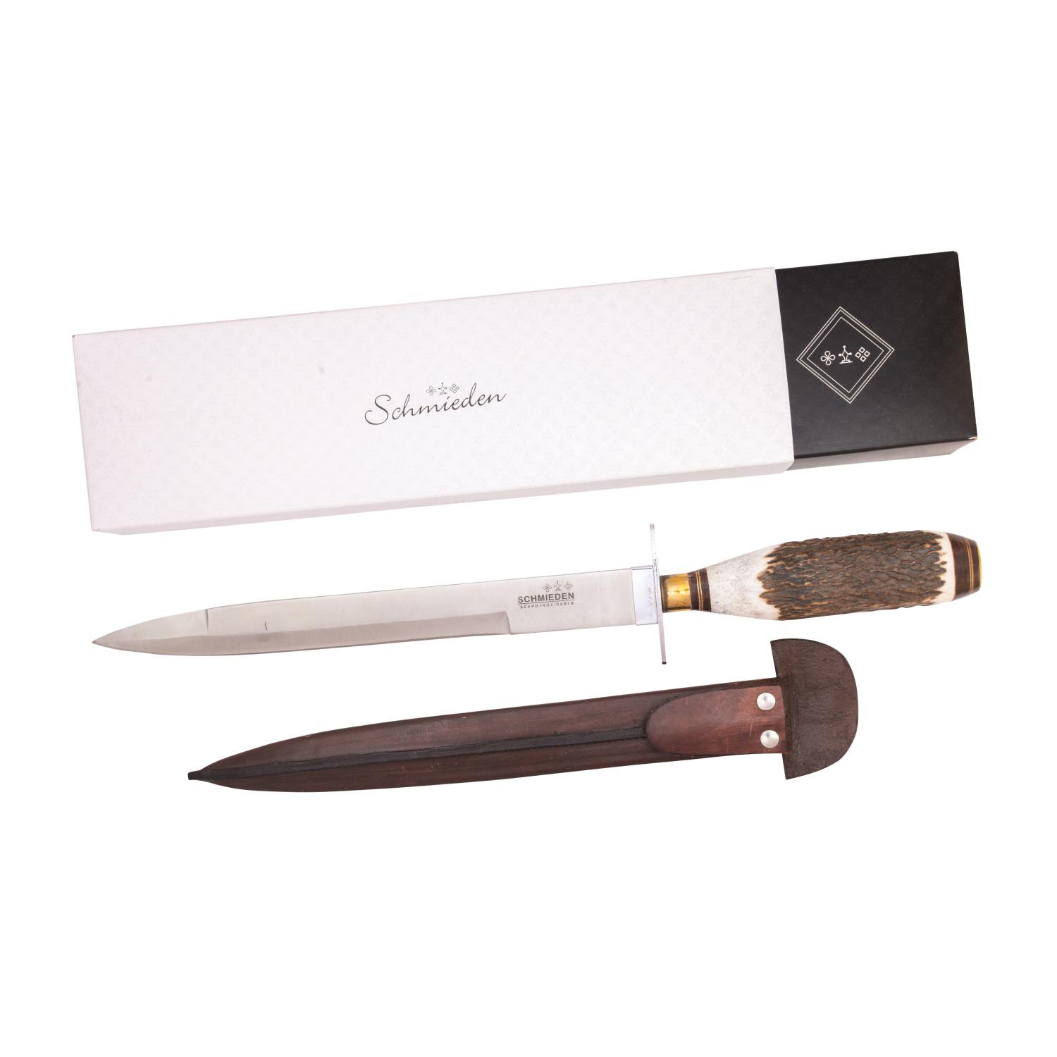 Daga Hoja Acero Inox. Schmieden 25 Cm Encabado En Ciervo Completo y Vaina De Cuero Vaqueta