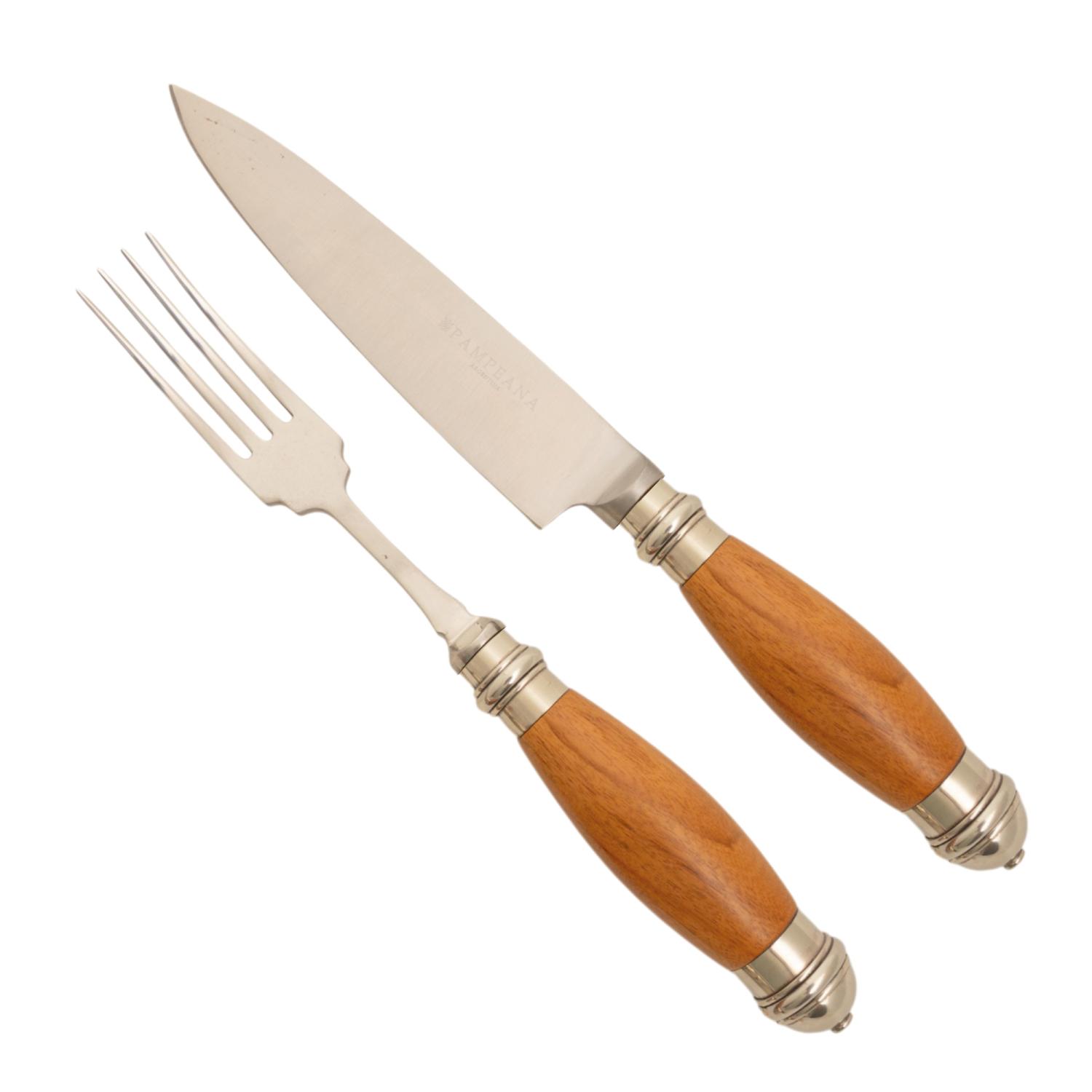 Juego De Cubiertos Linea Fina Madera Con Alpaca 2 Virolas Soaje Labrada 12 Piezas En Caja De Madera Cedro Lustrado Hoja De Cuchillo 14 Cm Marca Pampeana Acero Inoxidable 420, Tenedor 4 Dientes Pampeana,
