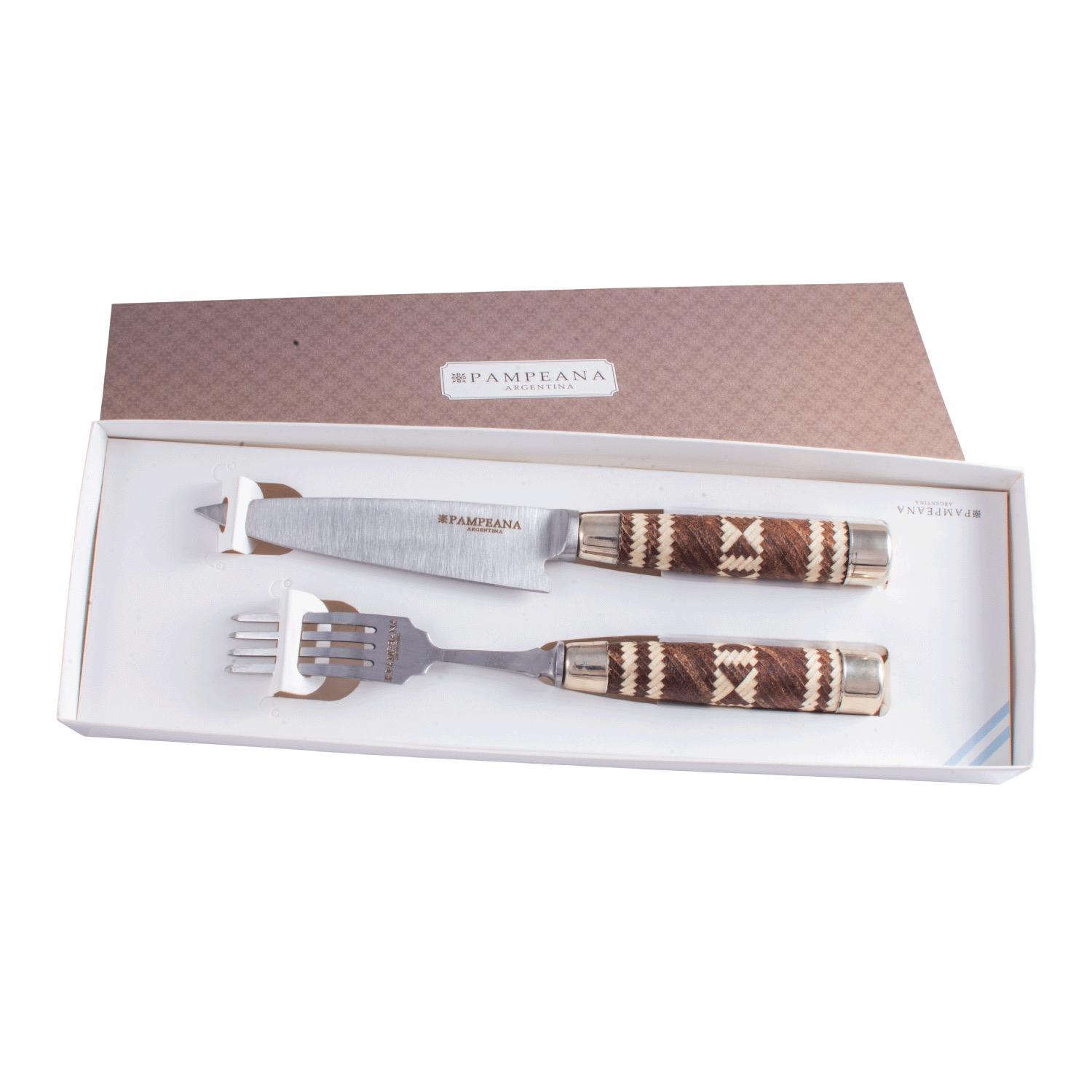 Juego De Cuchillo Y Tenedor Inox Mango Trenzado Con Packaging