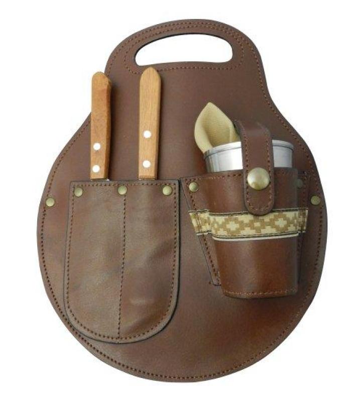 Juego De Pic-Nic Individual En Cuero Vaqueta Con Plato De Madera, Vaso De Acero Inox, Servilleta y Cubiertos