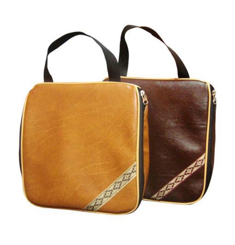 Juego De Pic-Nic Individual En Símil Cuero y Cierre Con Plato De Madera, Vaso De Acero Inox, Servilleta y Cubiertos