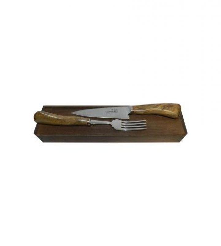 Juego Para Asado Cuchillo y Tenedor Acero Inox Schmieden 5″ Encabados En Madera Con Caja Comun