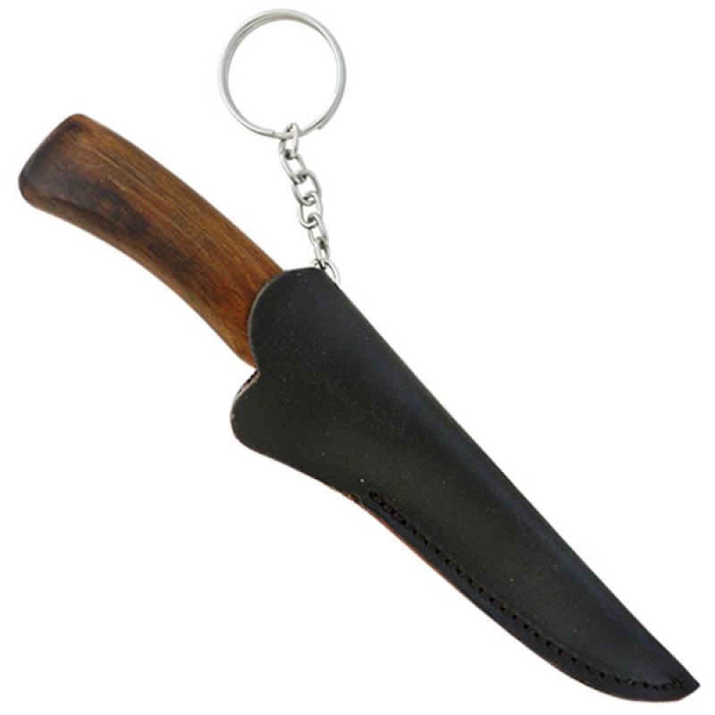 Llavero Cuchillito Con Hoja Acero Inox Schmieden 8 Cm Encabado En Madera Con Vaina De Cuero Vaqueta. Largo total 15.50cm