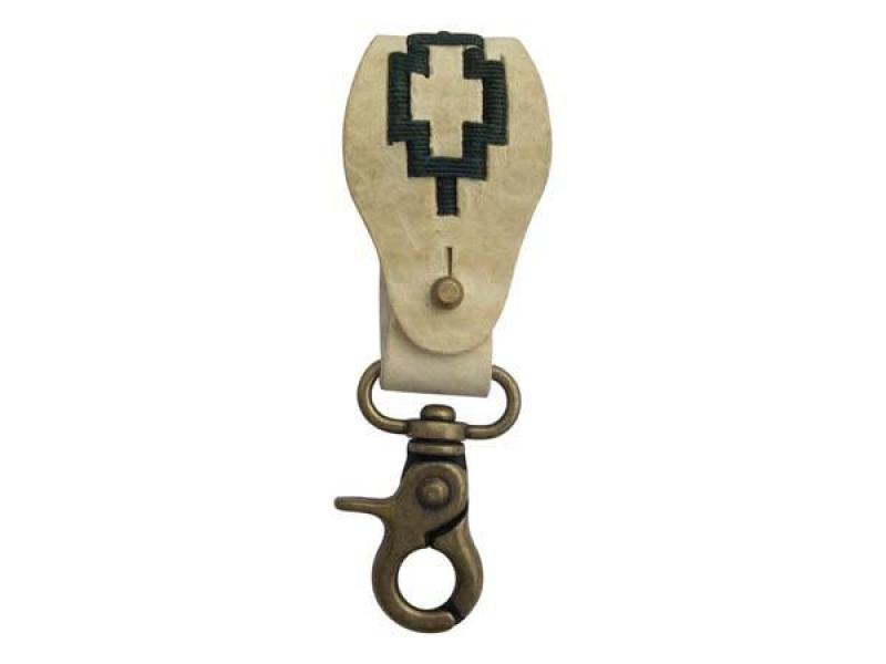 Llavero De Cuero Crudo Bordado Con Mosqueton