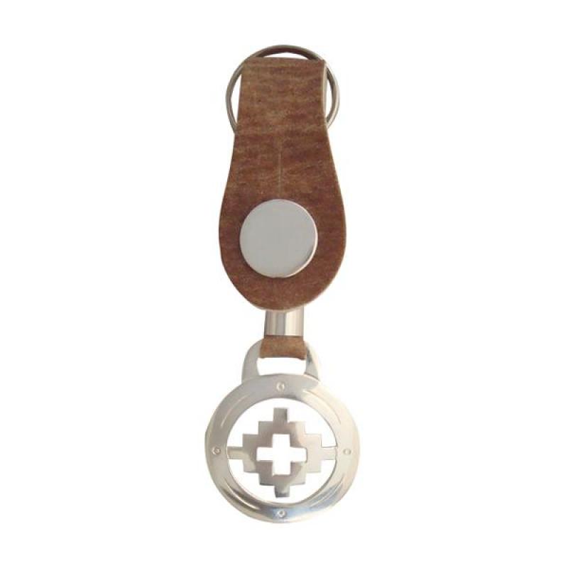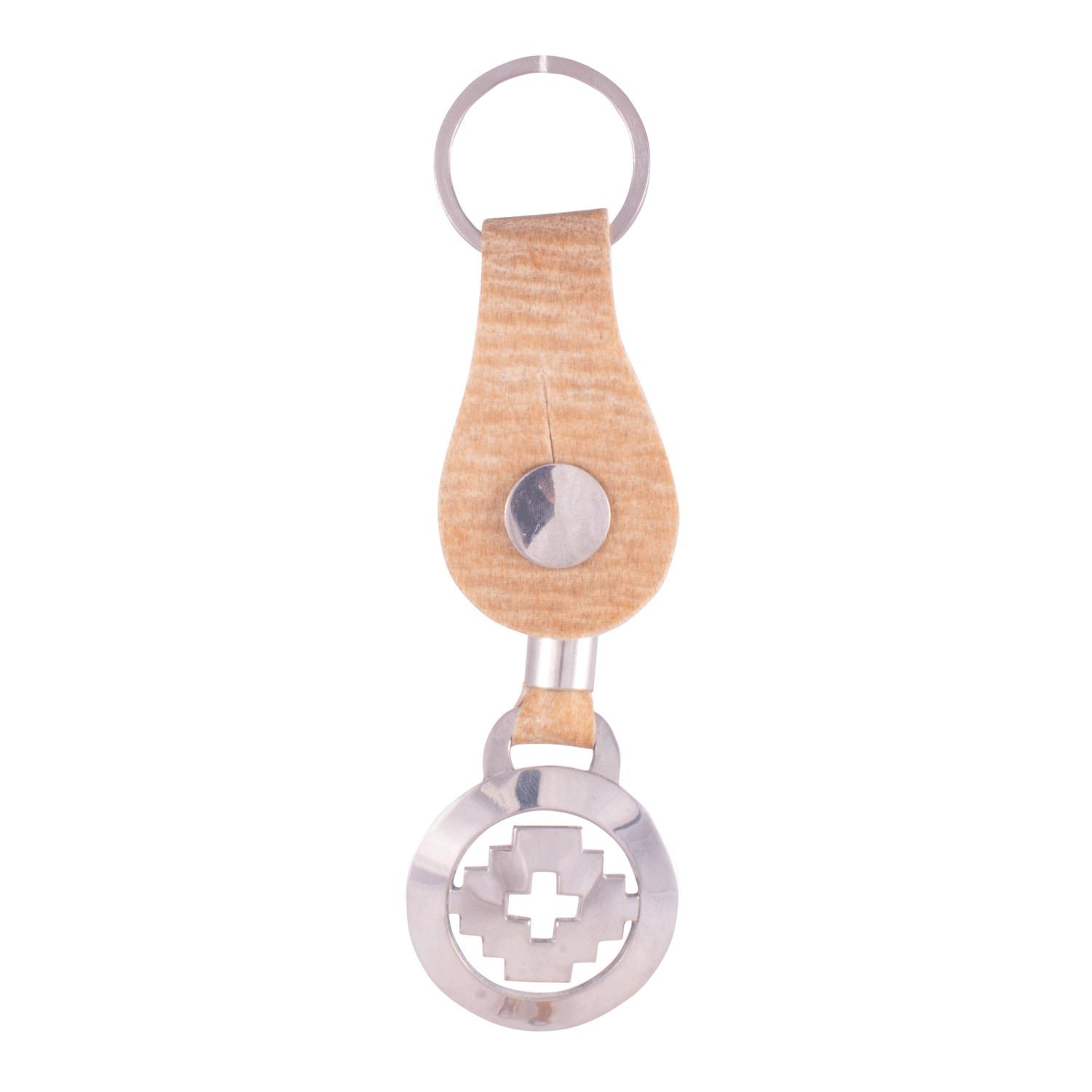 Llavero De Cuero Crudo Fino Con Botón y Dije Calado De Alpaca Bañado en Plata