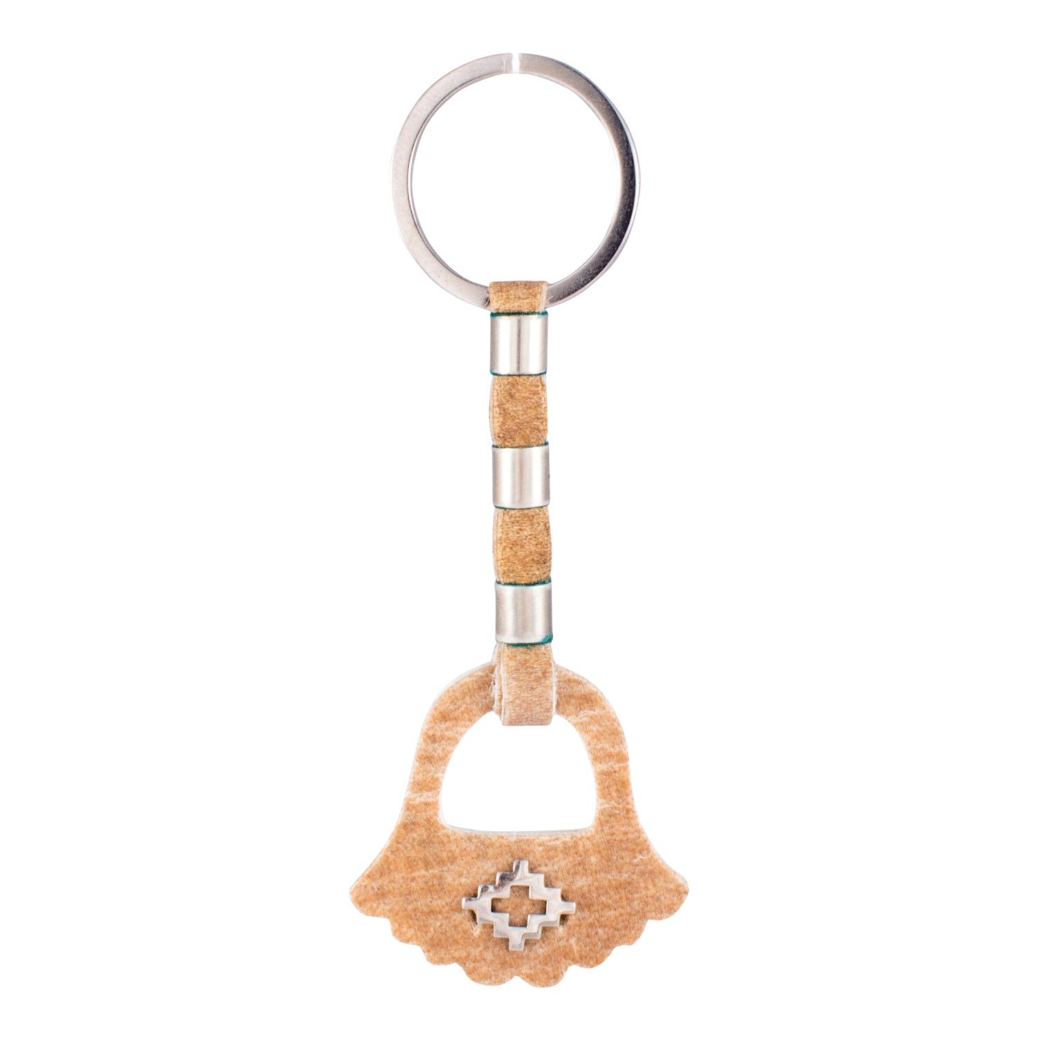 Llavero De Cuero Crudo Estribo Con Dije De Alpaca