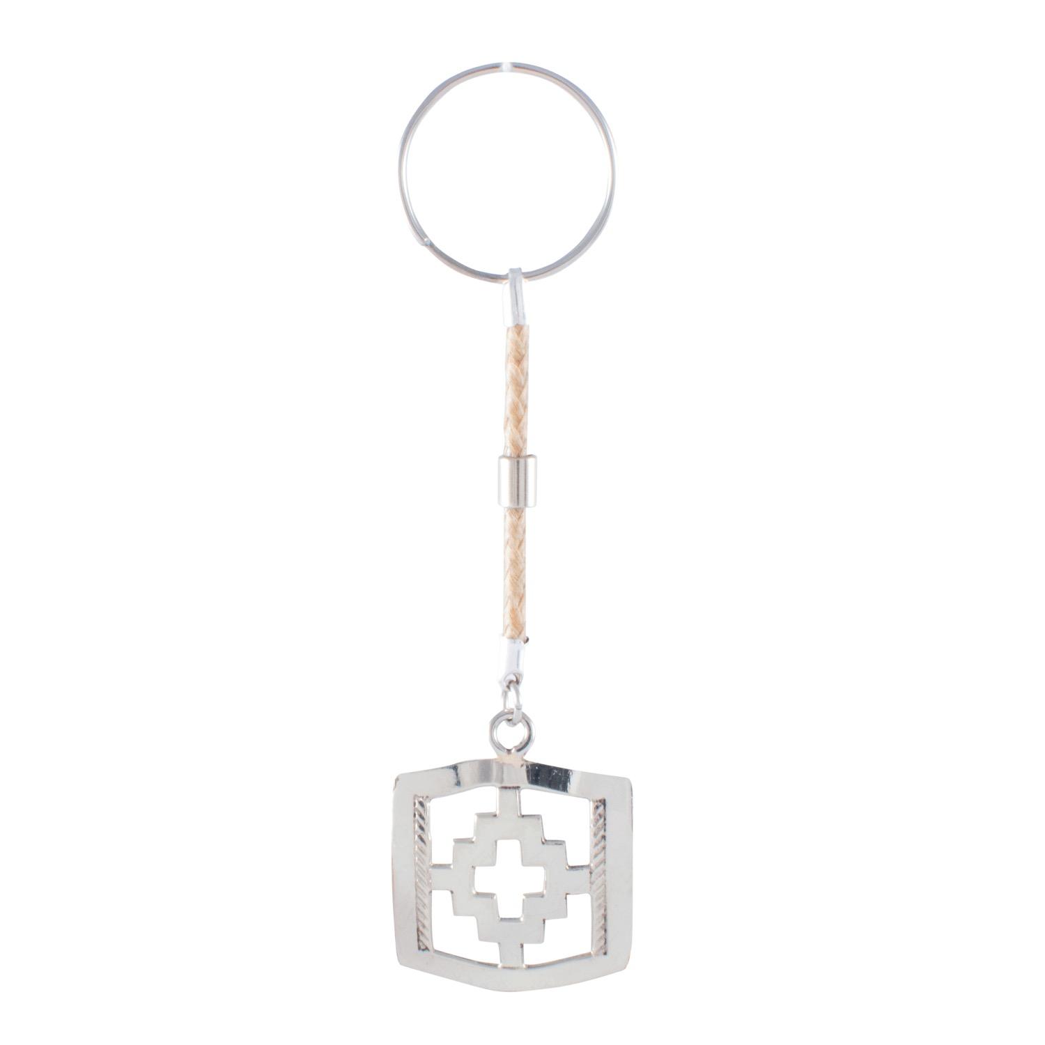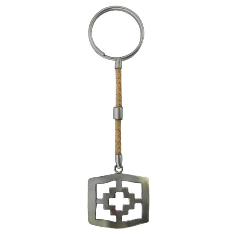 Llavero De Cuero Crudo Trenzado Con Detalles y Dije En Alpaca