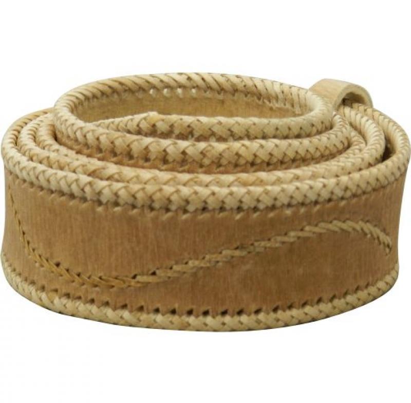 Lonja De Cuero Crudo Fina Con Costura Central Simple y Tejida En Bordes
