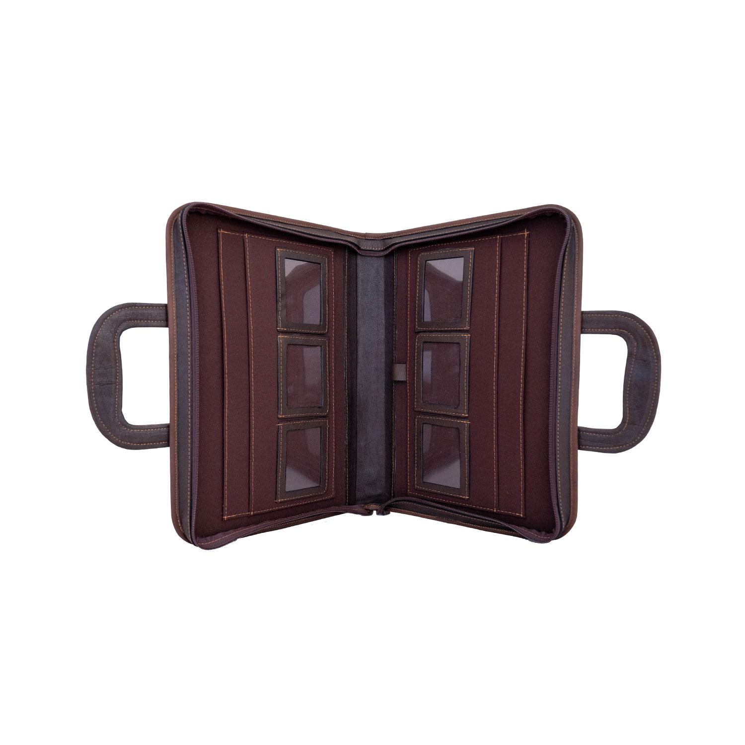 Maletín de Cuero, manija reforzada y un interior con organizadores de varias divisiones. Tipo Carpeta. Ideal Oficina