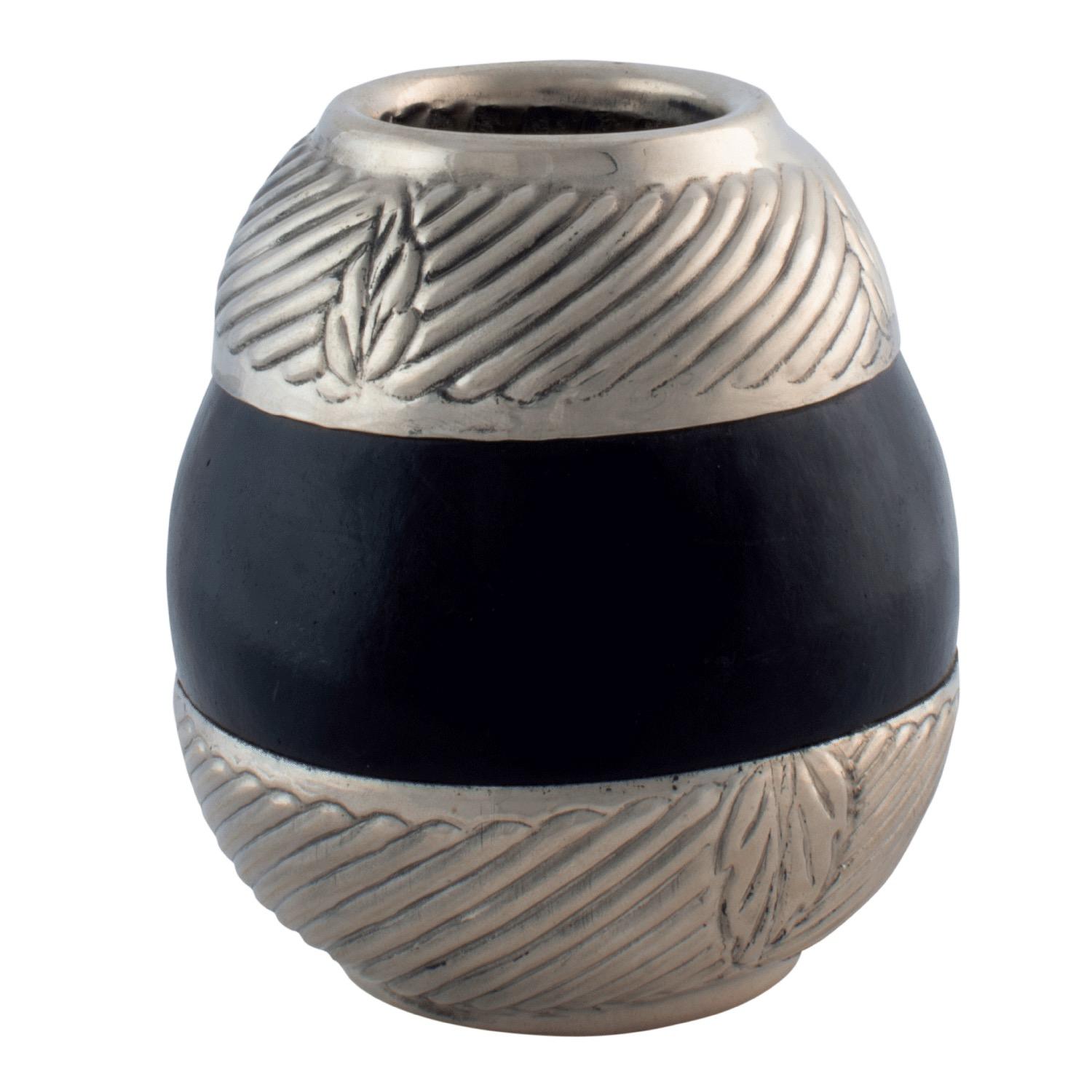 Mate Porito De Calabaza Con Boquilla Y Base En Alpaca «Galloneado»