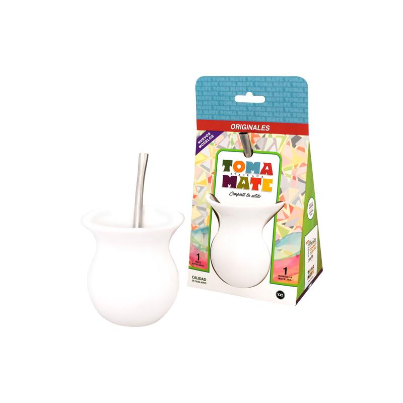 Mate Bocon de Cerámica con bombilla en packaging