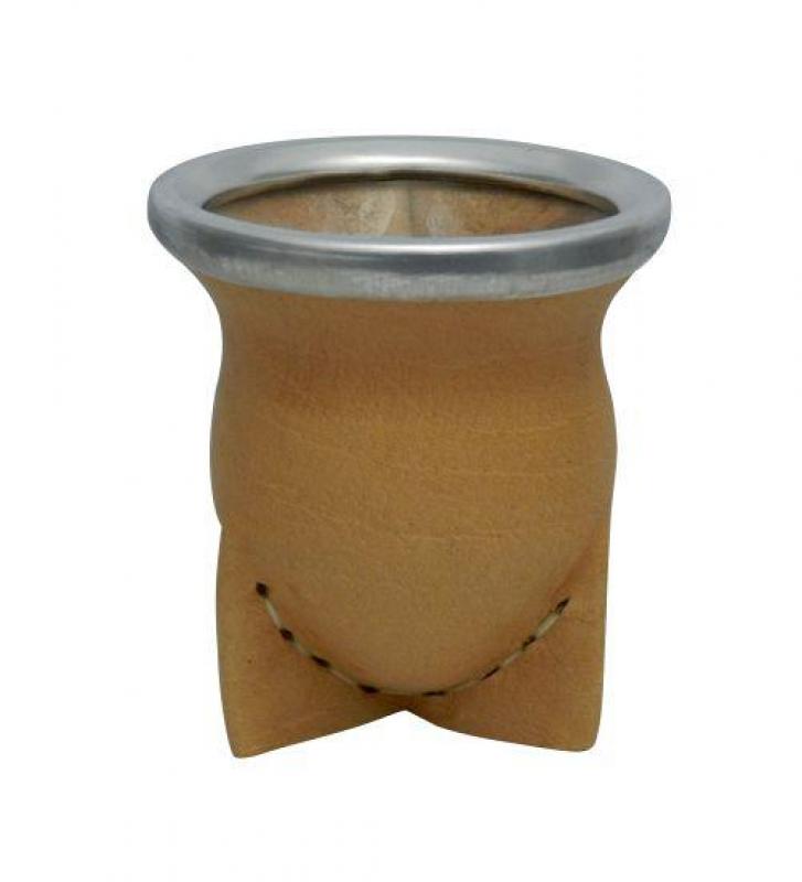 Mate De Vidrio Forrado En Cuero Vaqueta Claro Con Base