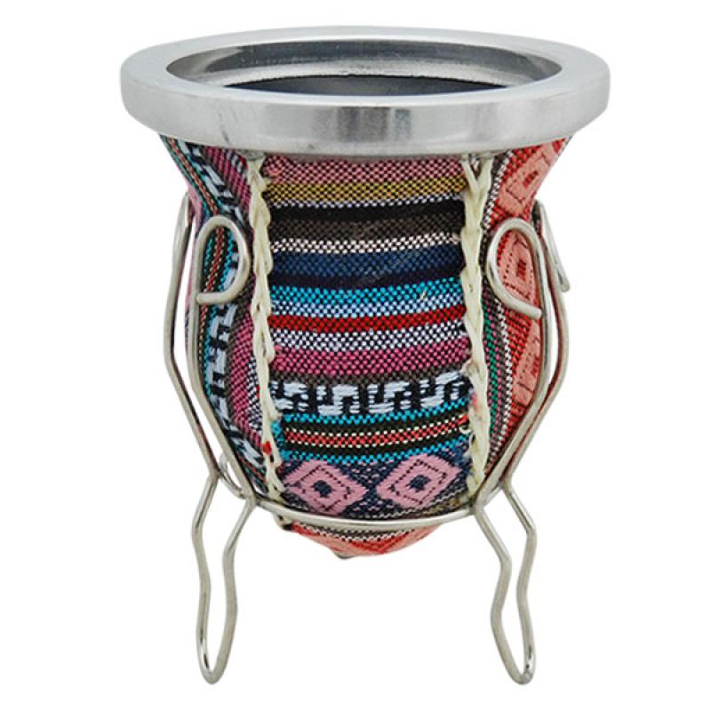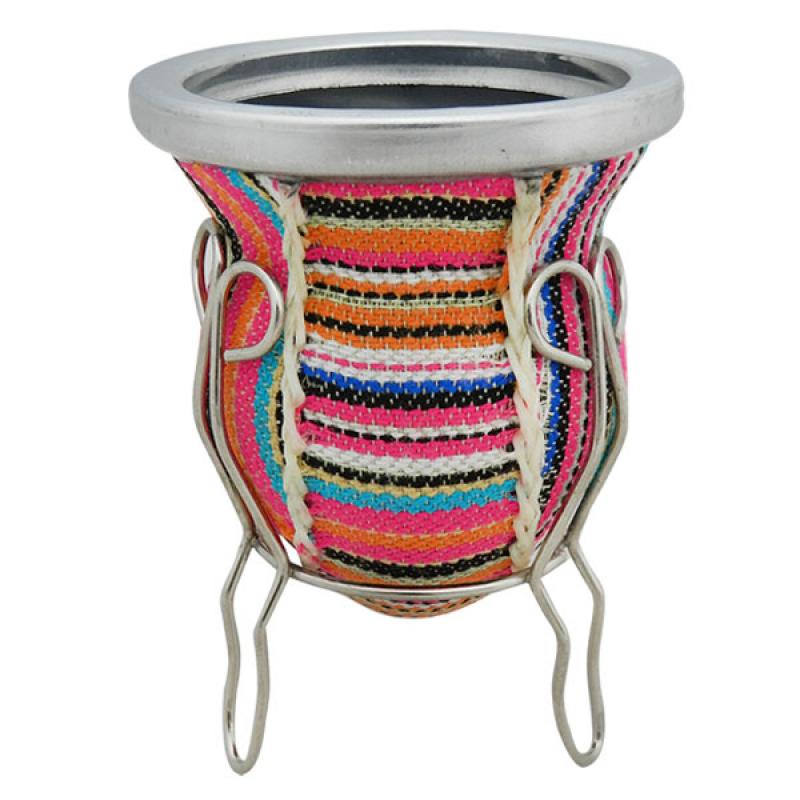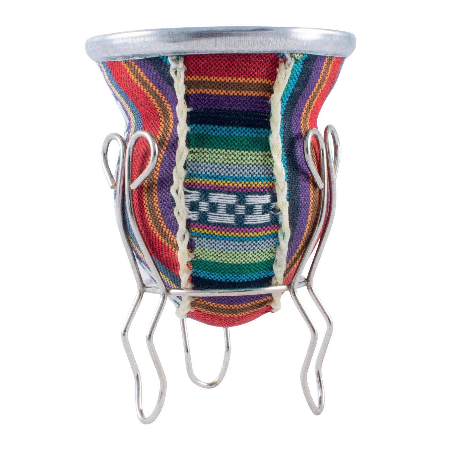 Mate De Vidrio Forrado Con Aguayo y Posa De Metal