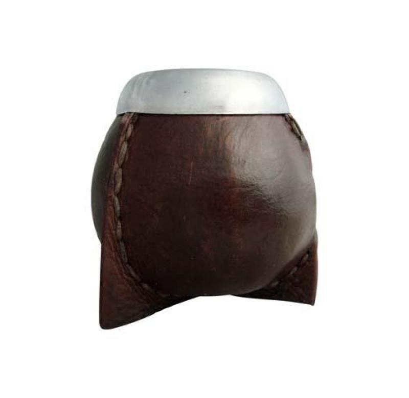 Mate Porito De Calabaza Forrado En Cuero Vaqueta Oscuro Con Patas