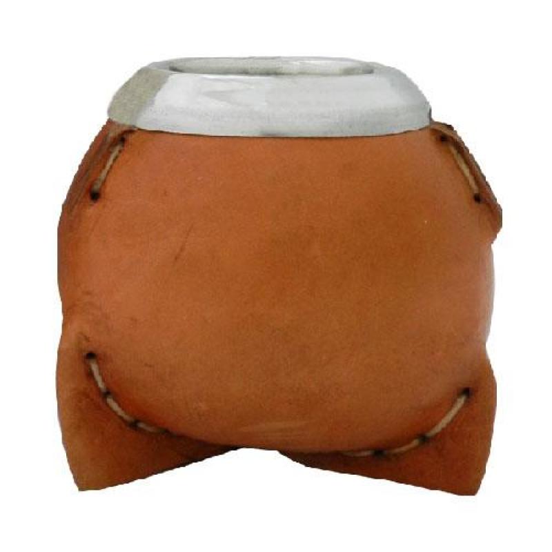 Mate Porito De Calabaza Forrado En Cuero Vaqueta Claro Con Patas