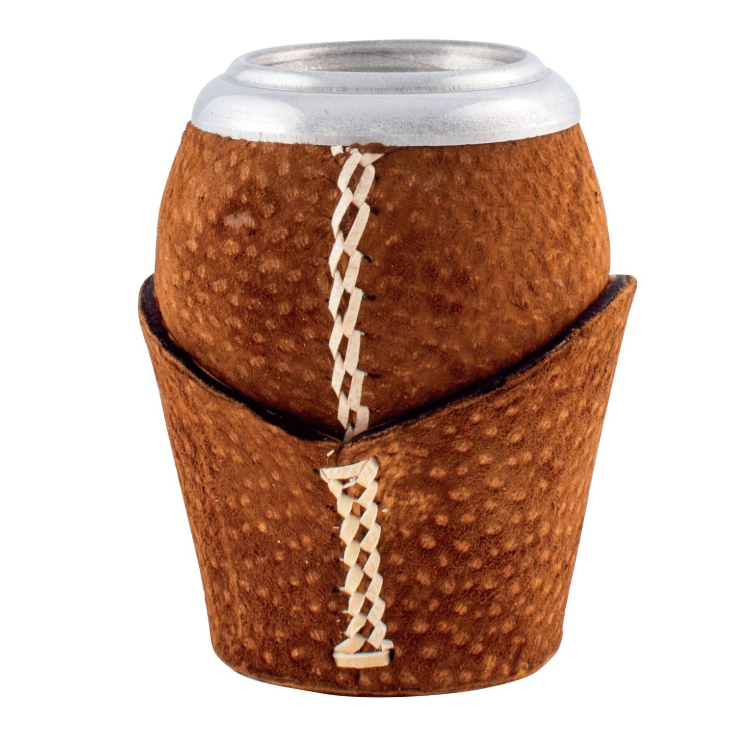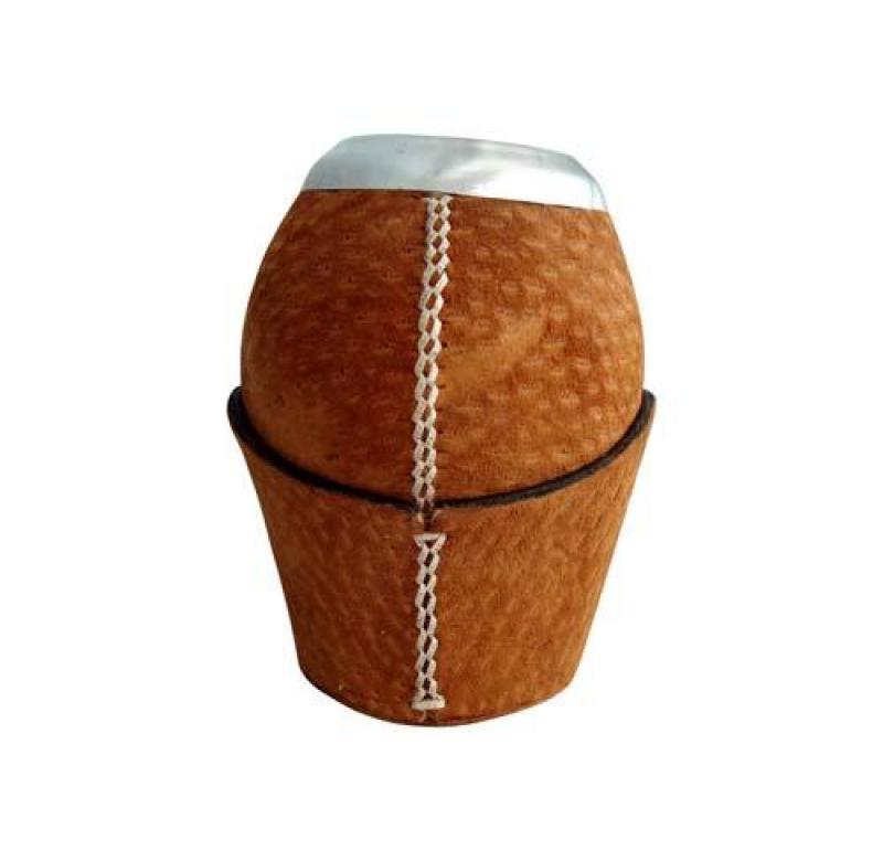 Mate Poro Uruguayo De Calabaza Forrado En Cuero Carpincho Con Base De Carpincho
