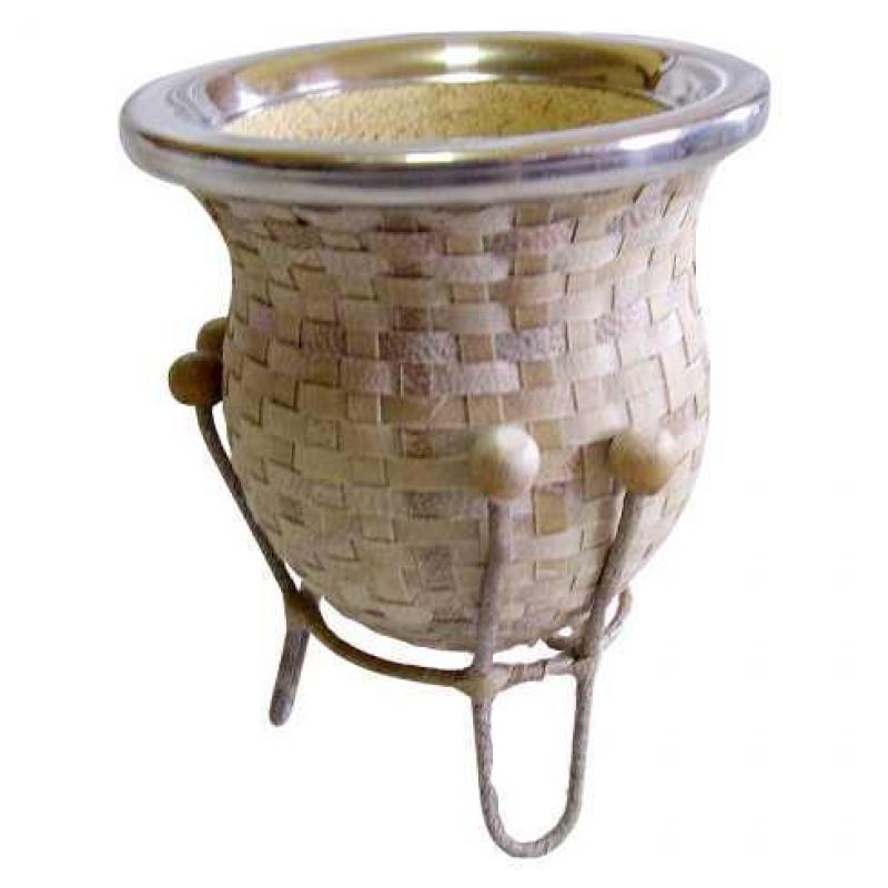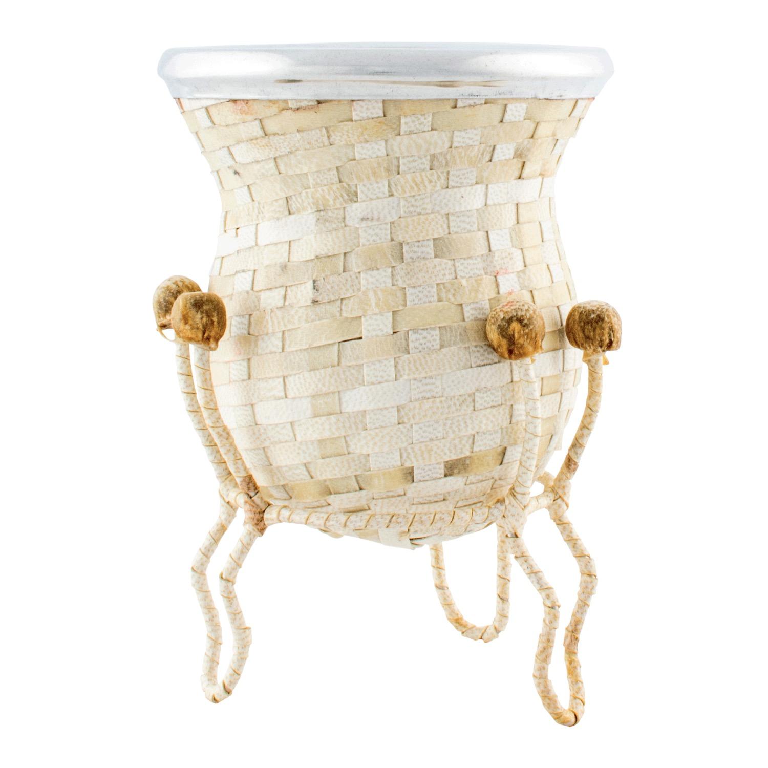 Mate Vuelo Canasta De Calabaza Con Posa Forrado En Cuero Crudo