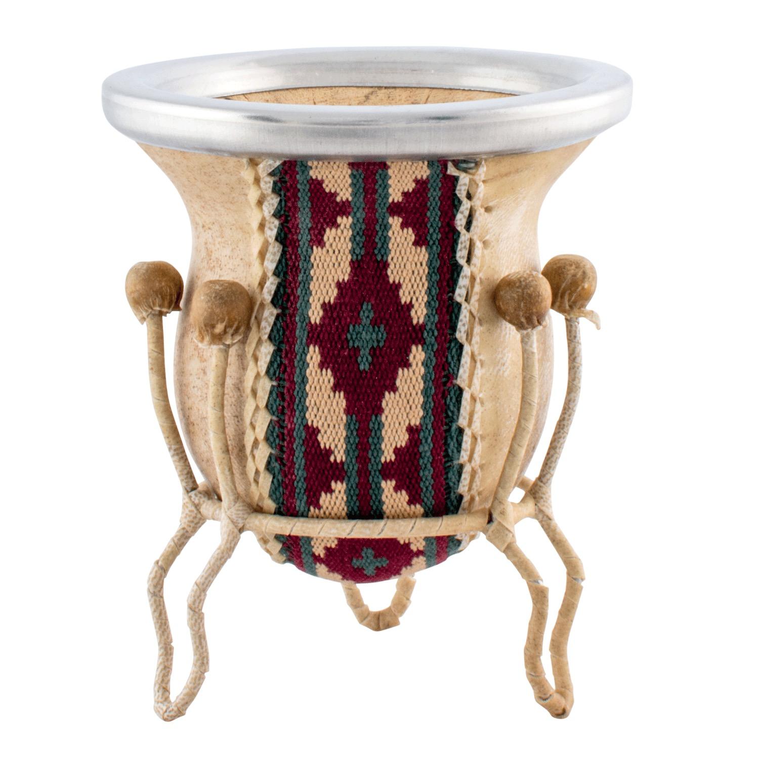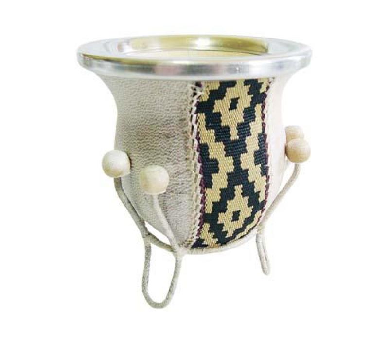 Mate Vuelo De Calabaza Recubierto En Cuero Crudo y Guarda Tejida En Tiento Con Posa Forrado En Cuero Crudo
