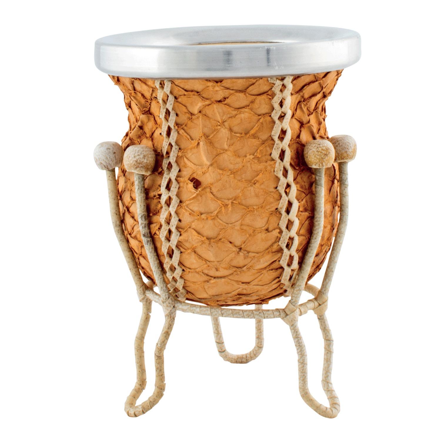 Mate Vuelo De Calabaza Recubierto En Mondongo Con Posa Forrado En Cuero Crudo