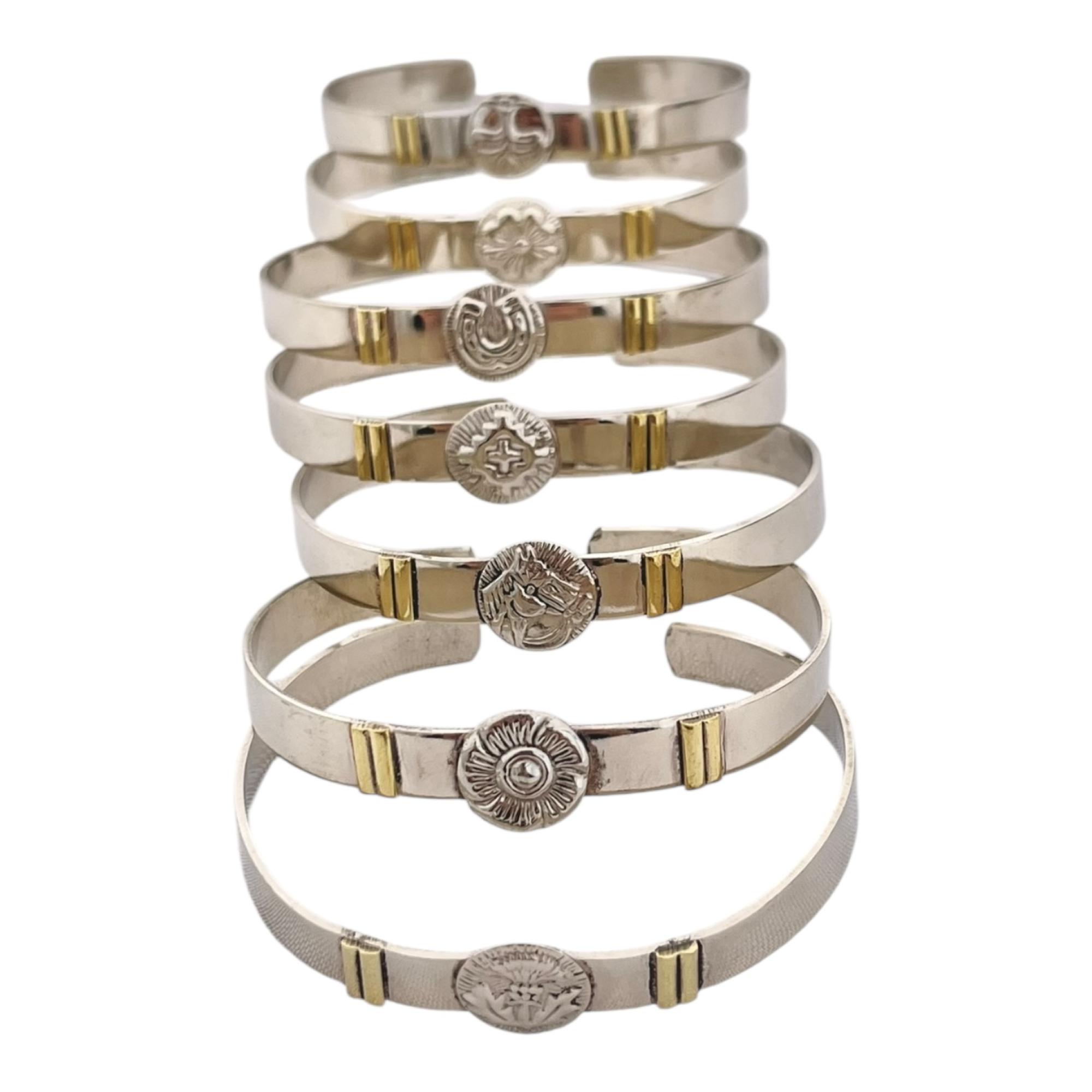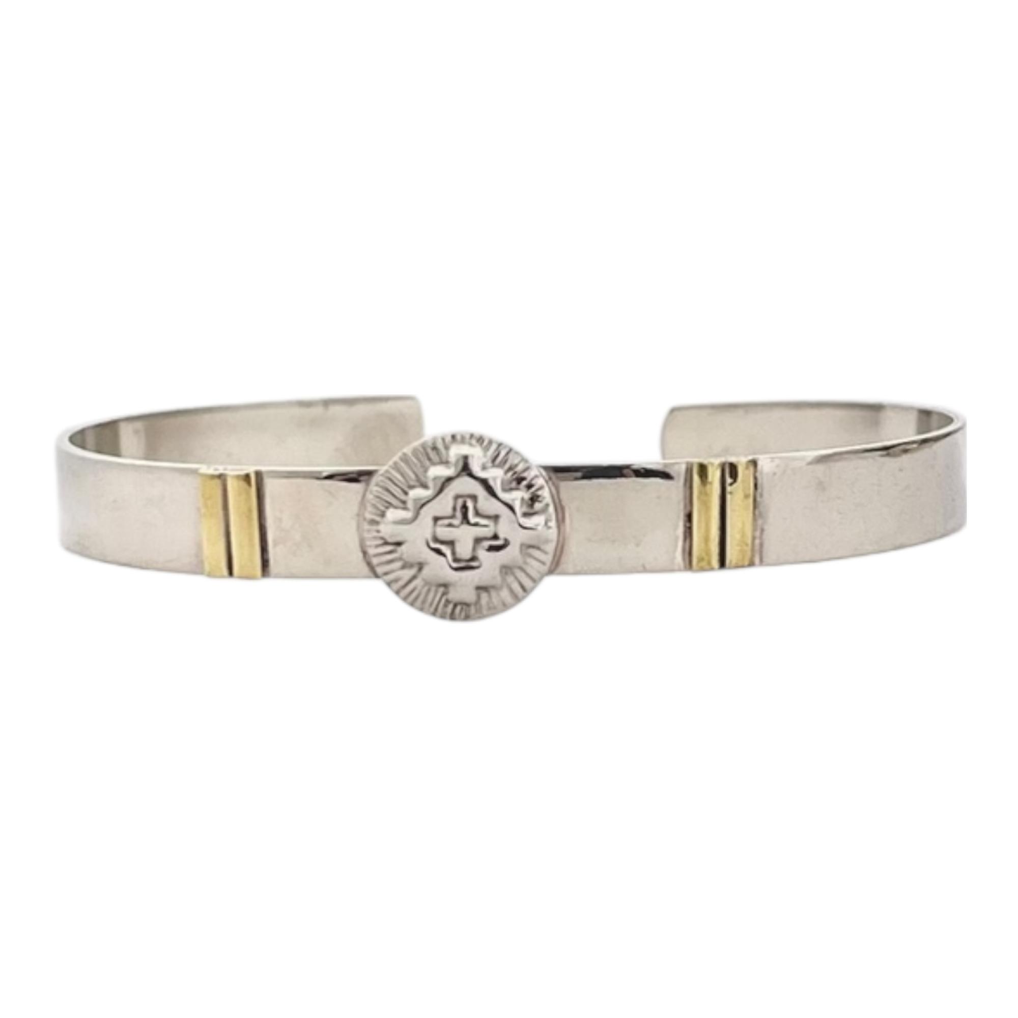 Pulsera De Alpaca Con Detalles En Bronce y Dije