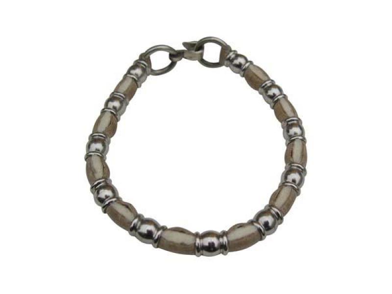 Pulsera De Cuero Crudo Con Bombas De Alpaca Entacada