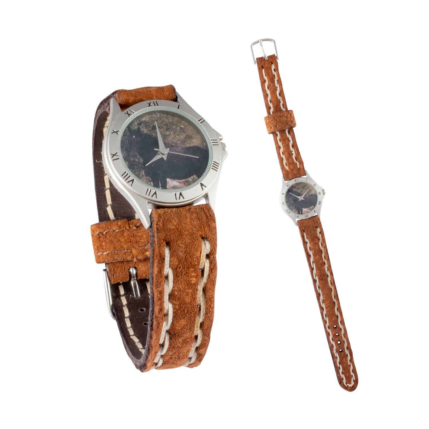 Reloj con Malla Partida De Carpincho Con Tejido En Borde Fino Para dama
