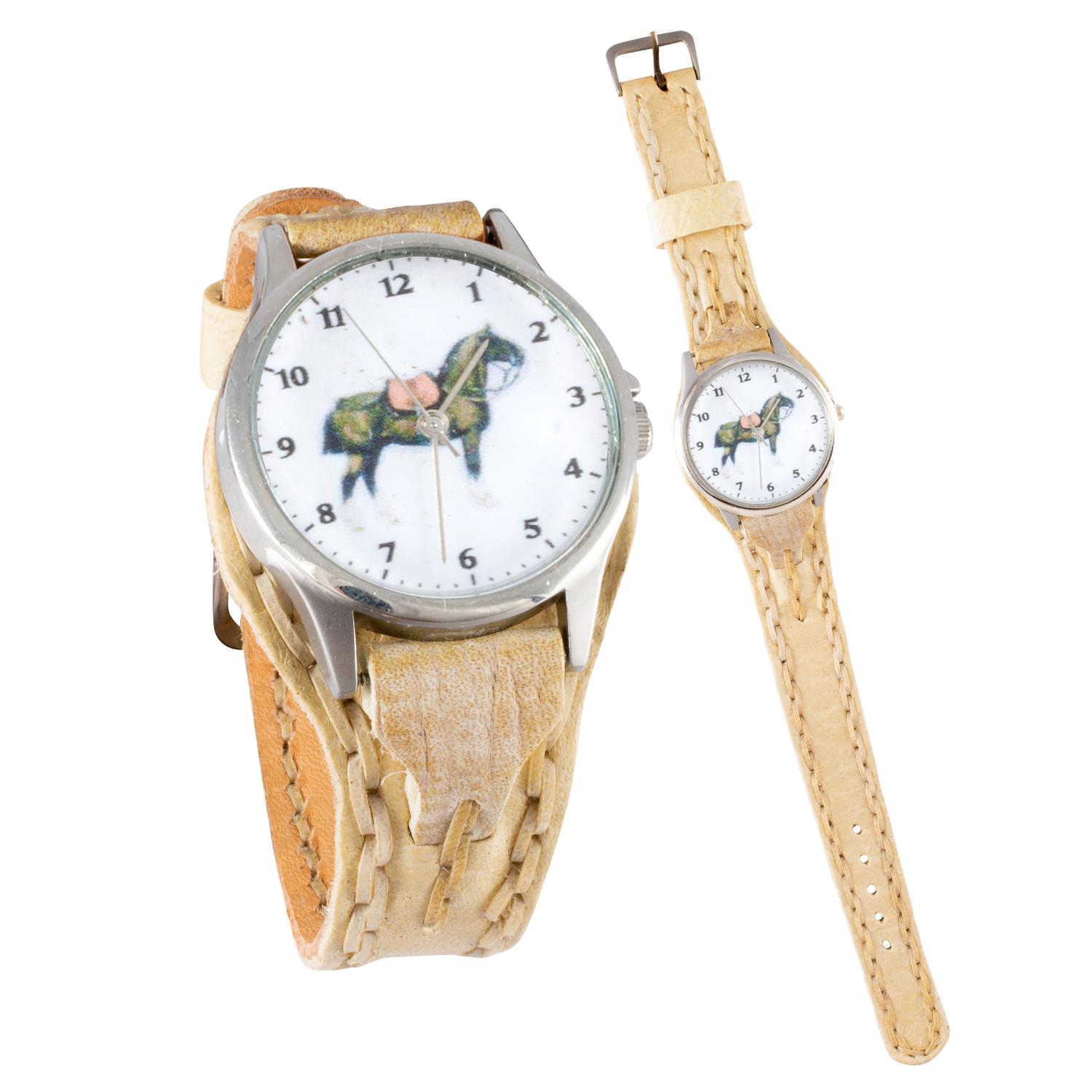 Reloj malla entera de cuero crudo con tejido de borde para dama