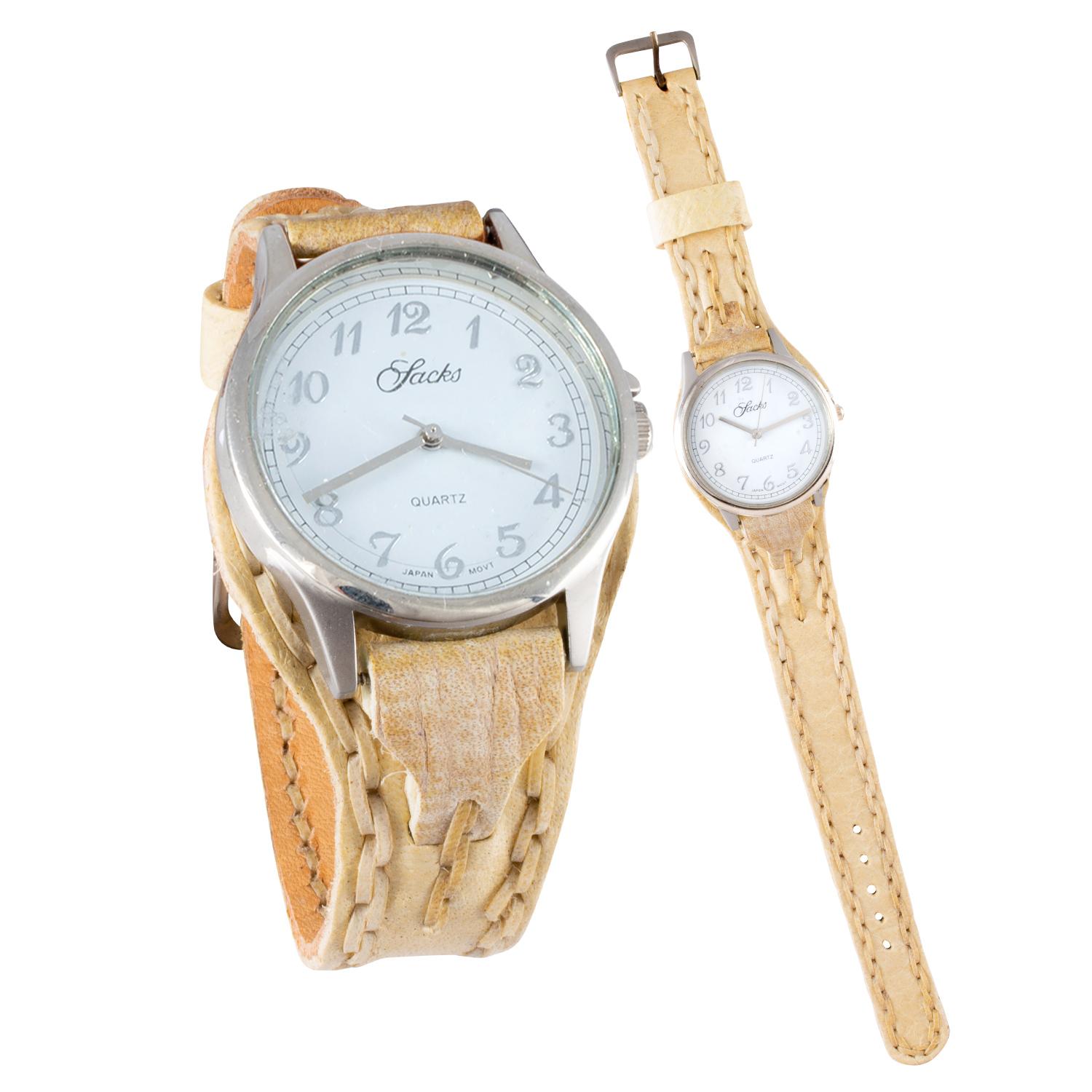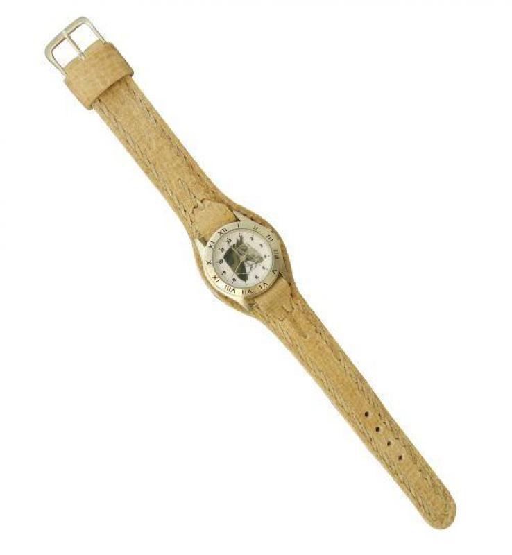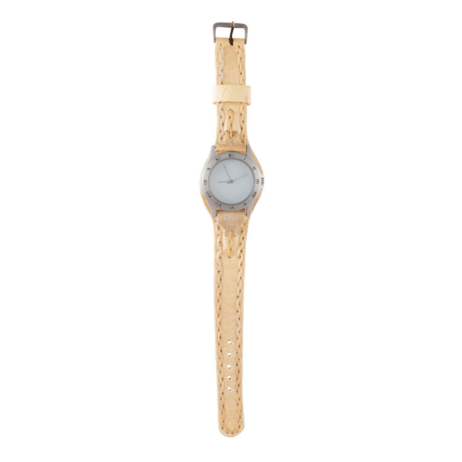 Reloj malla entera de cuero crudo con tejido de borde para dama