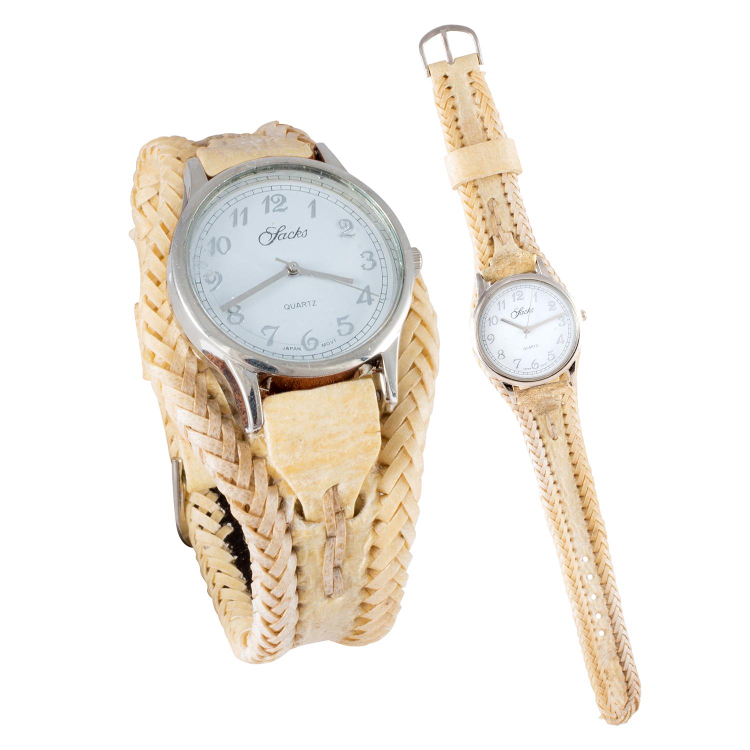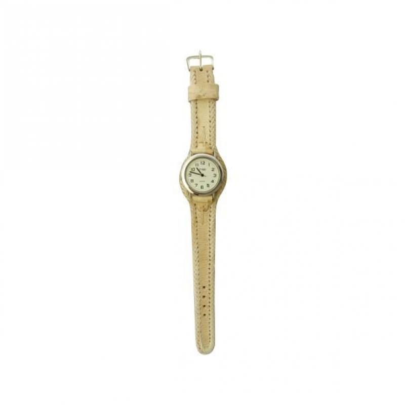 Reloj Malla Entera De Cuero Crudo Con Tejido De Borde Para Dama