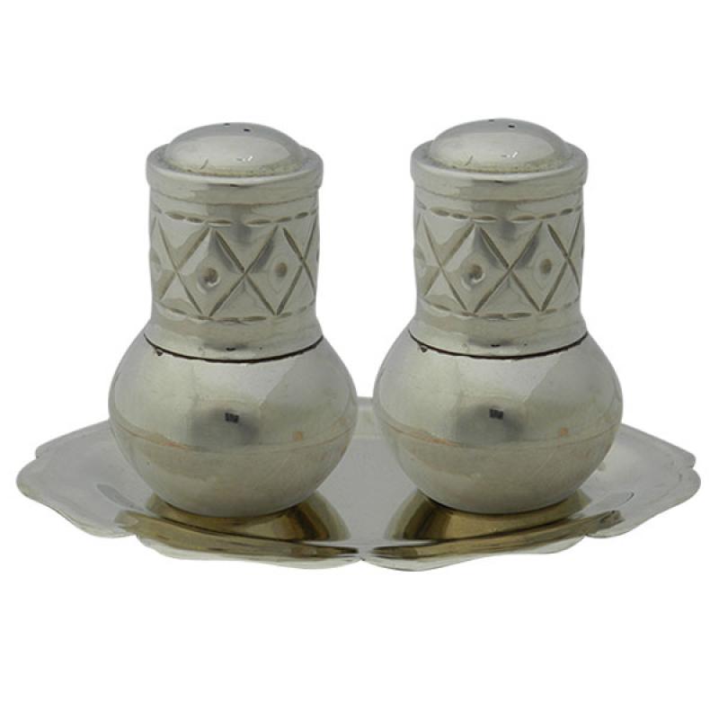 Set De Salero y Pimentero Con Bandeja De Alpaca Con Estampados Varios