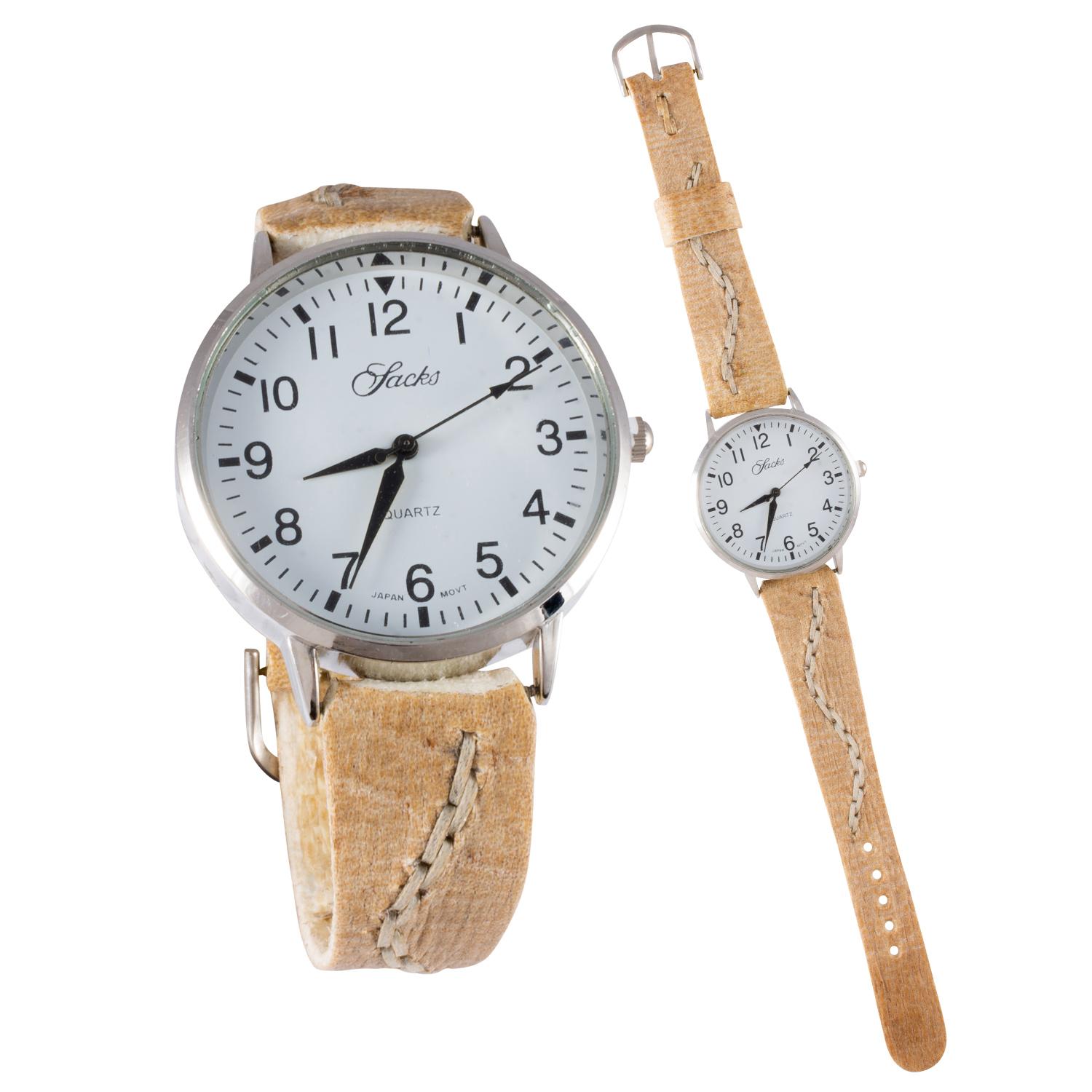 Reloj Malla Partida De Cuero Crudo Con Tejido Fino Para dama